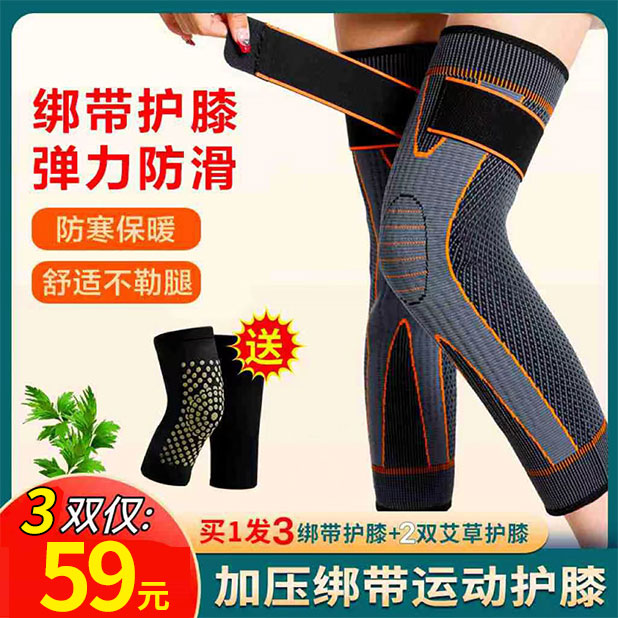 极速【买1发3】保暖护膝加长z绑带送艾草护膝薄款男女运动腿套中