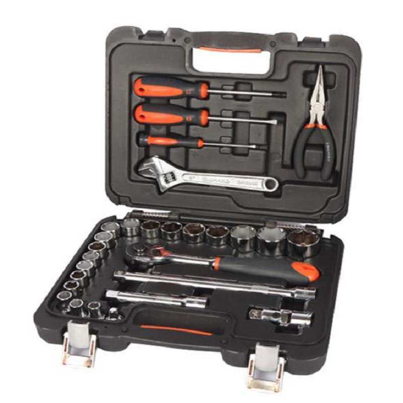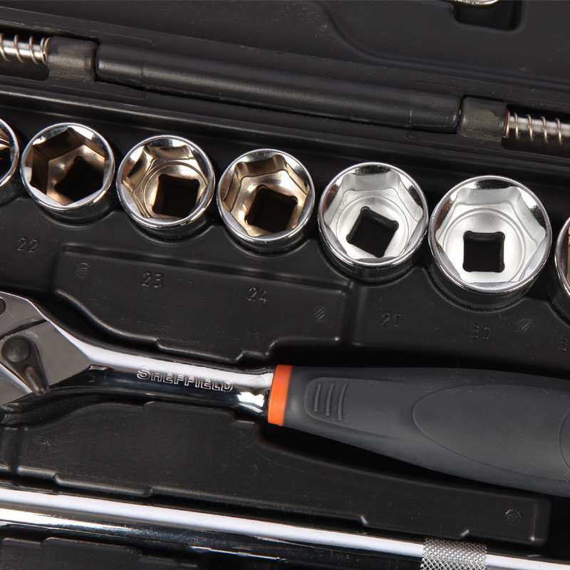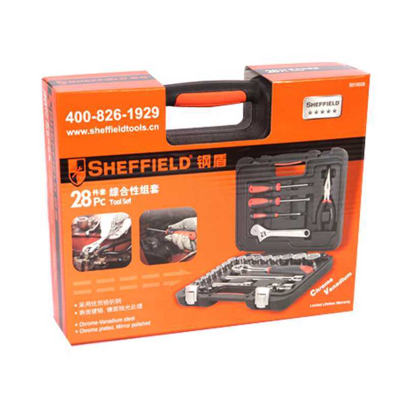 钢盾28件套套筒棘轮扳手套装综合性组套五金工具箱家用汽车维修