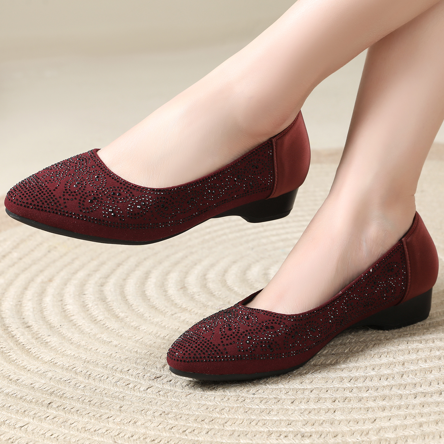 水钻单鞋女士舒适软底妈妈鞋平底大码中老年人鞋子低跟一脚蹬女鞋