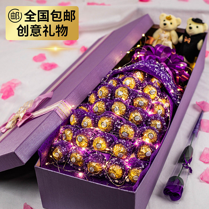 高档礼物费列罗巧克力玫瑰花束礼盒生日礼物送男女朋友老婆闺蜜