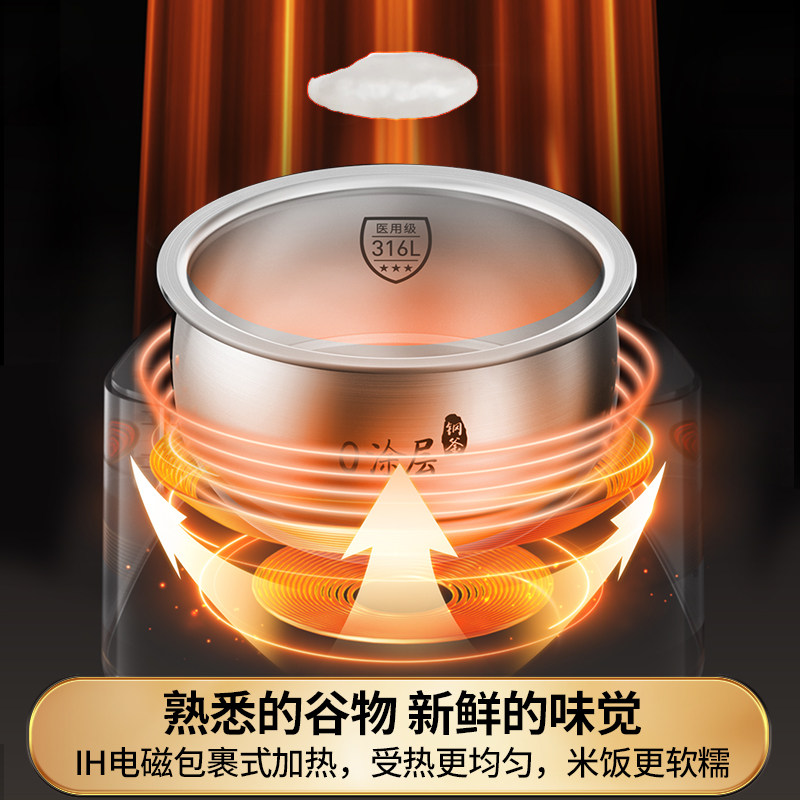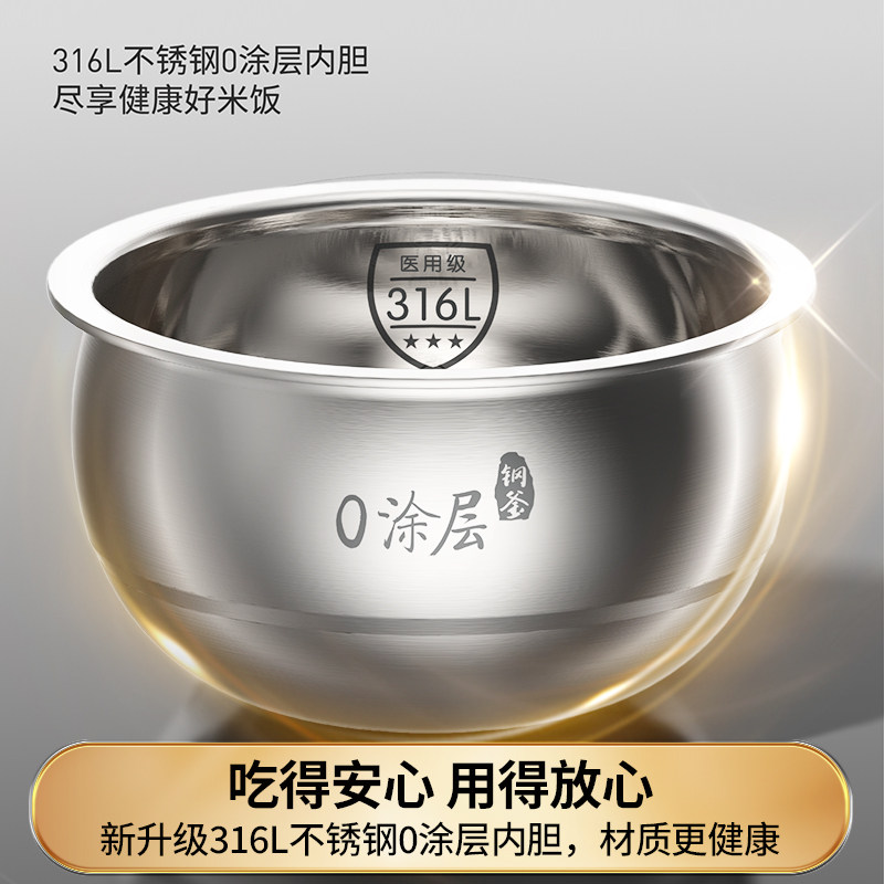 九阳0涂层IH电饭煲家用电磁加热小型316L不锈钢压力锅烹饪机