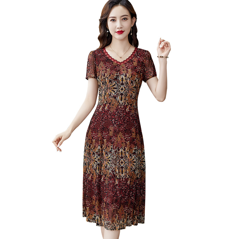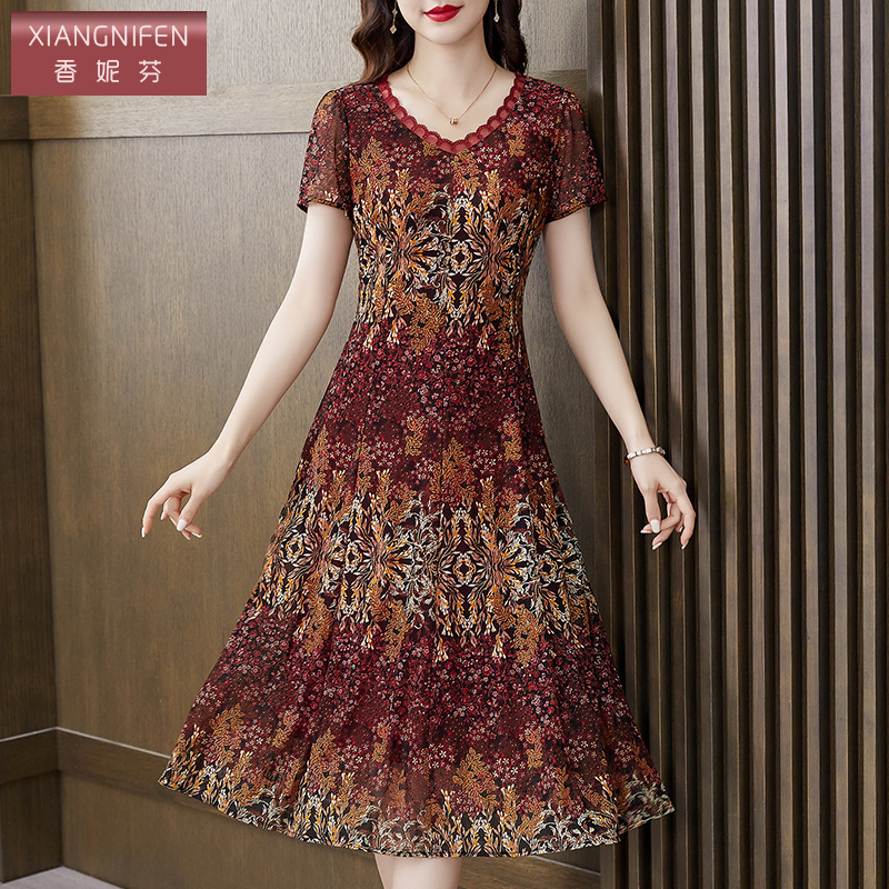 香妮芬复古收腰气质中年妈妈连衣裙女2025新款夏季台湾纱V领裙子