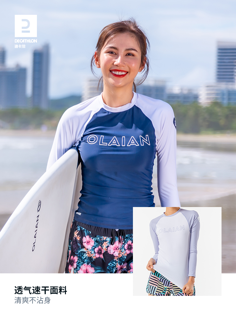 迪卡侬潜水服女冲浪服漂流大码防晒速干游泳衣水母衣保暖新款IVL1