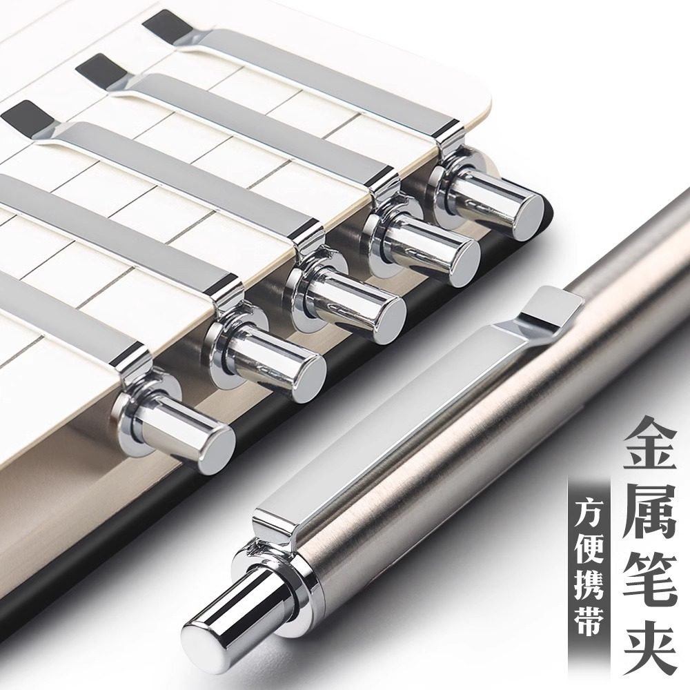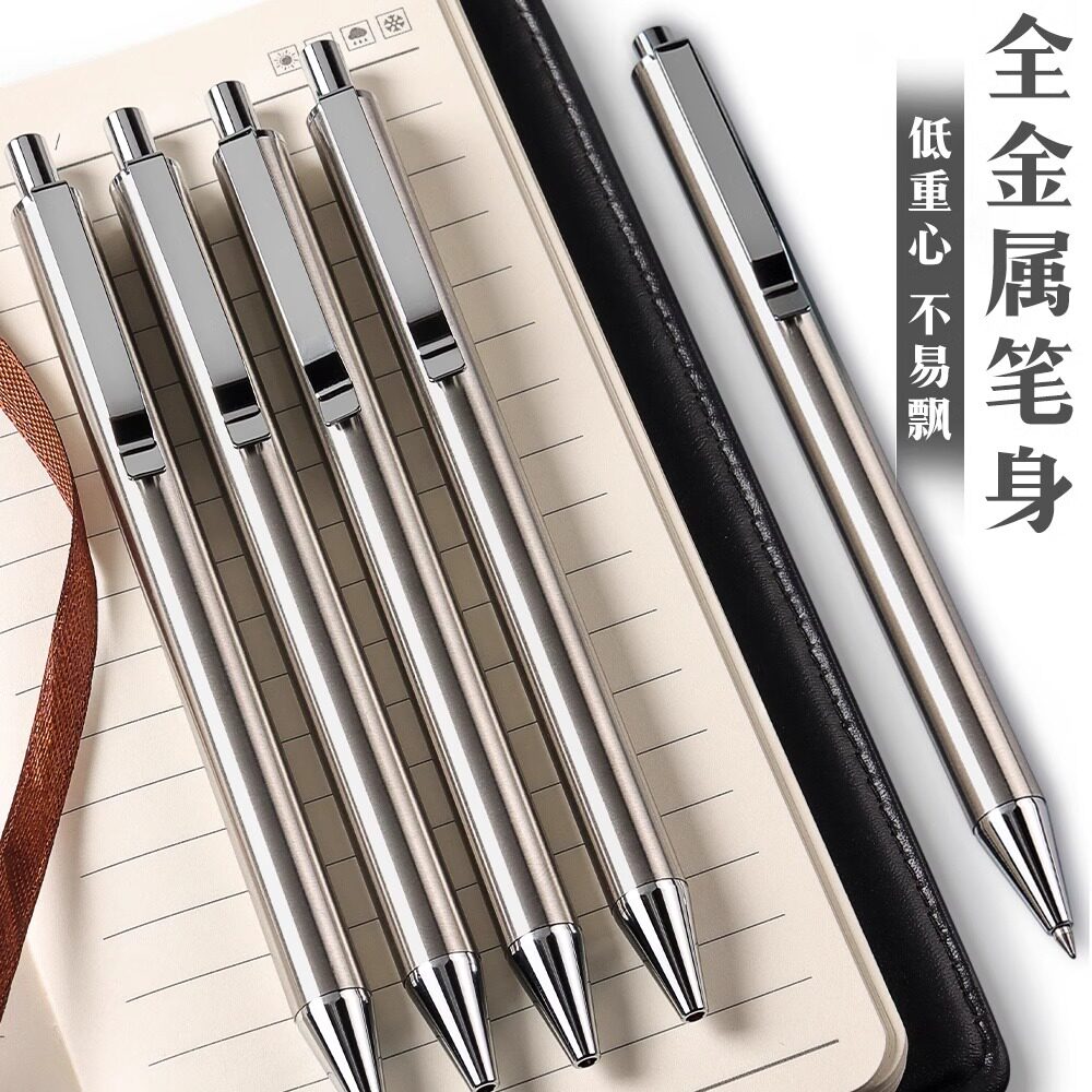 晨光全金属按动中性笔水笔学生专用碳素黑色0.5mm按压式办公签字笔商务高档新钢韵子弹头铁笔杆重手感圆珠笔