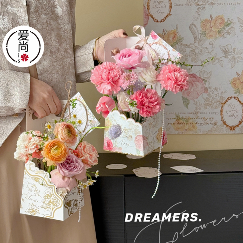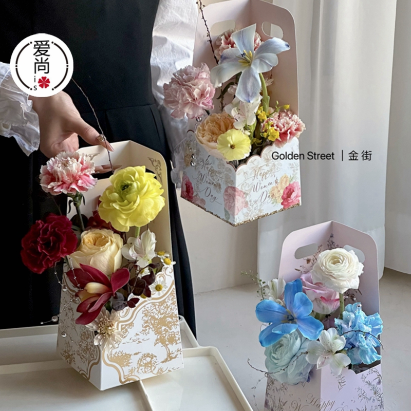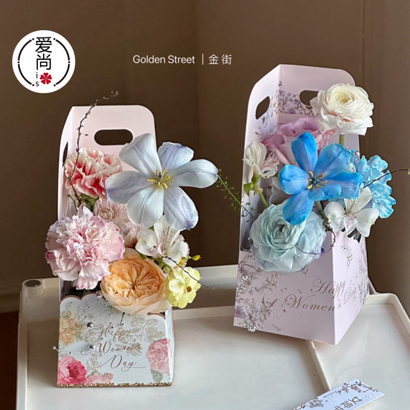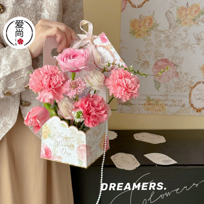 母亲节曼花丛间鲜花包装盒礼盒花艺课折叠插花盒手提花篮礼物盒