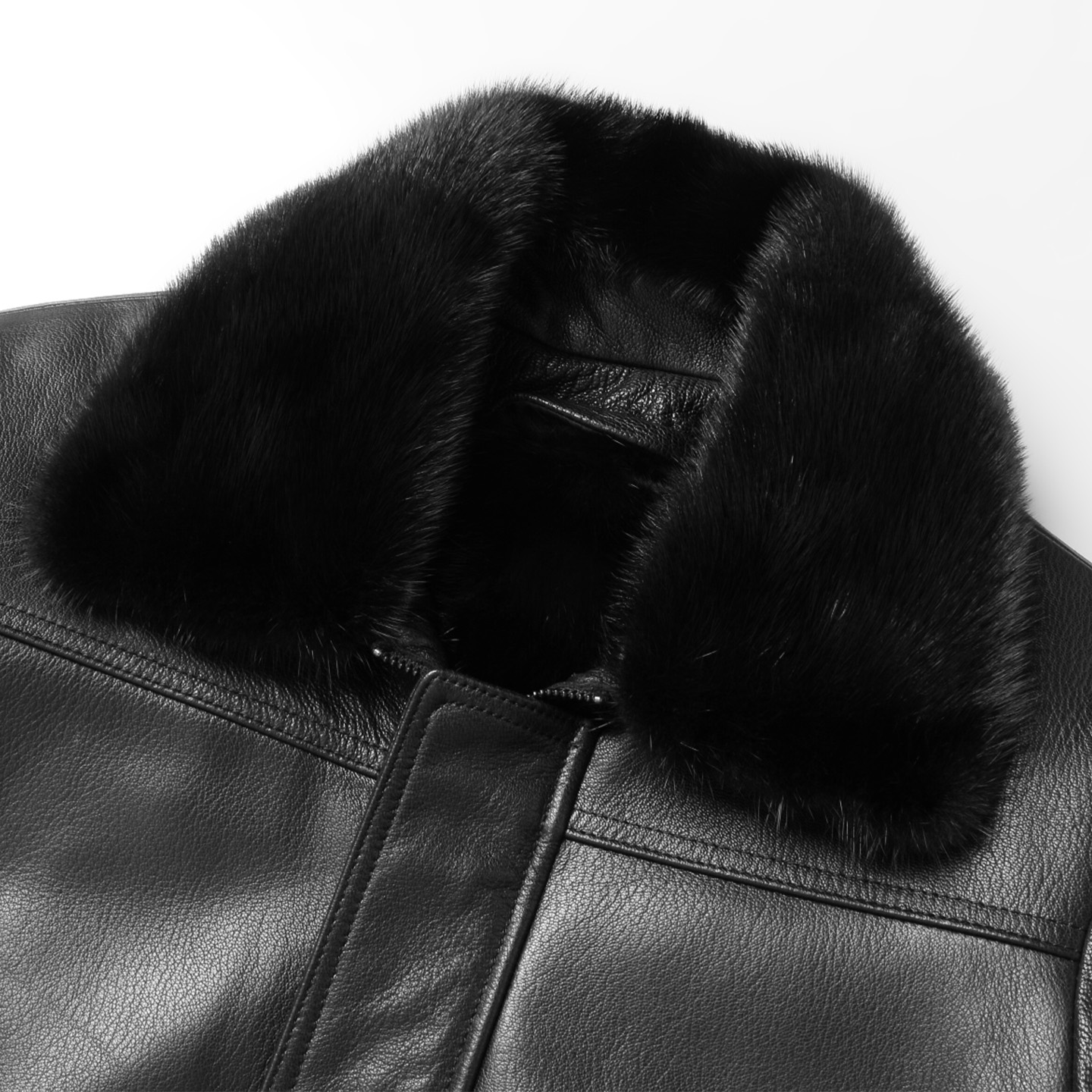 冬季新款海宁真皮皮衣男皮毛一体山羊皮夹克爸爸水貂内胆皮草外套