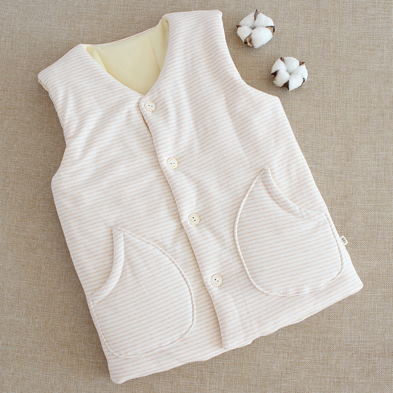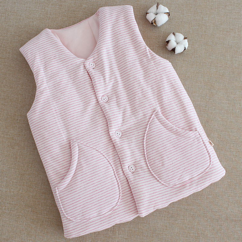 纯棉花条纹马甲中大童男女宝宝加厚保暖秋冬季棉背心居家外穿坎肩