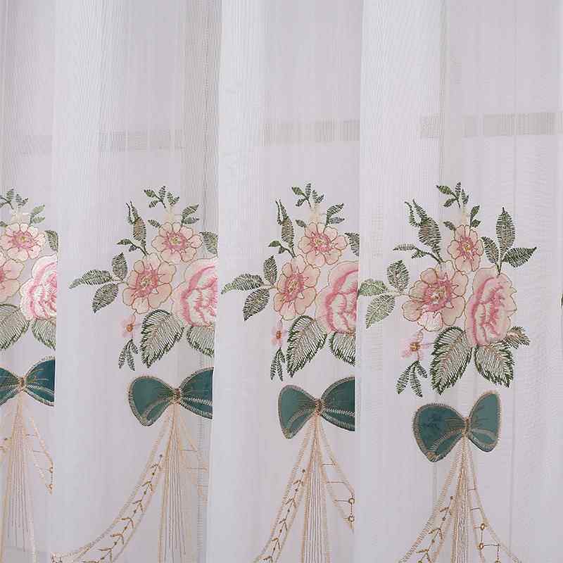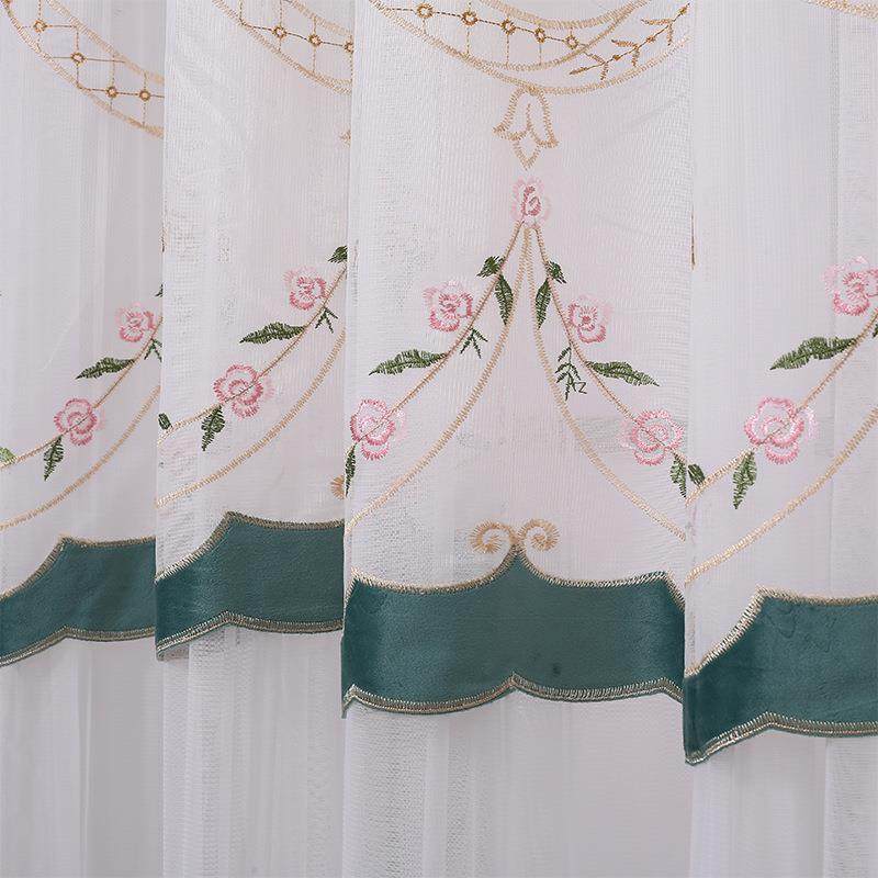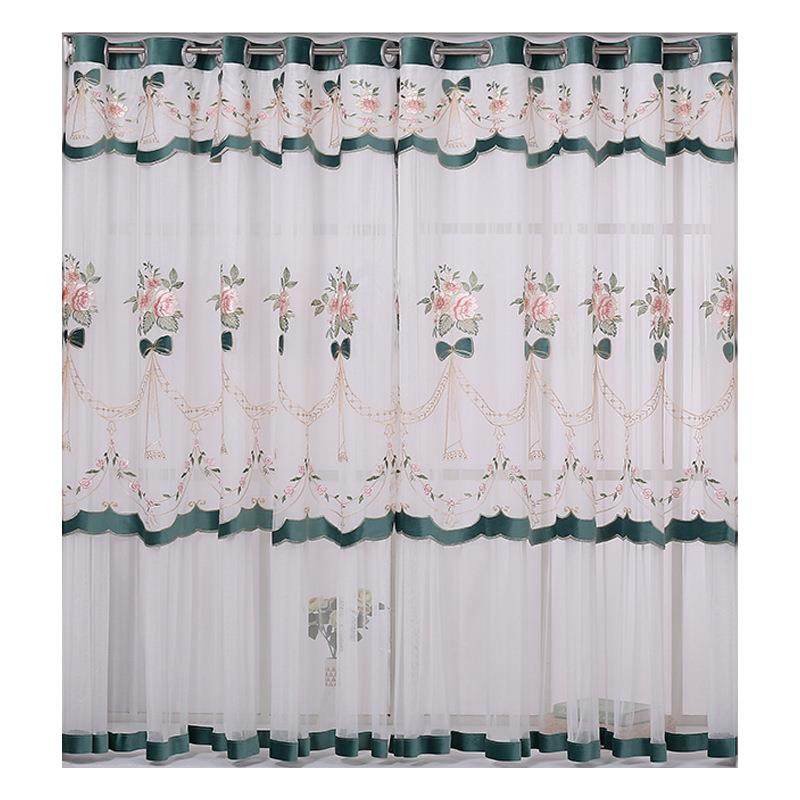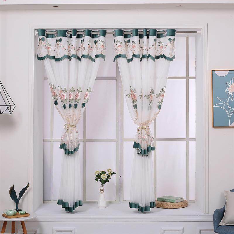 卧室绣花遮光窗帘蕾丝双层布纱一体免打孔安装2024年新款卧室阳台