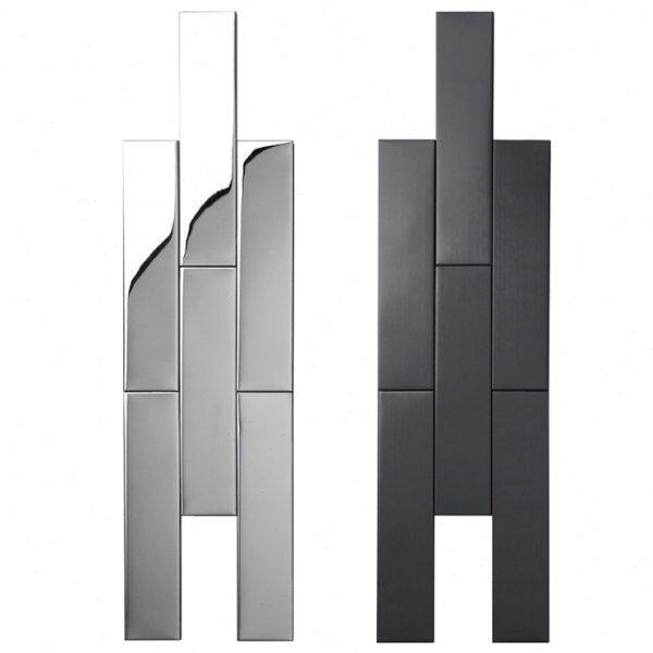 金属拉丝马赛克瓷砖背景墙店面餐厅长条镜面工字不锈钢墙砖艺术砖
