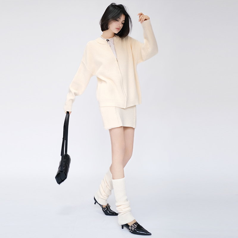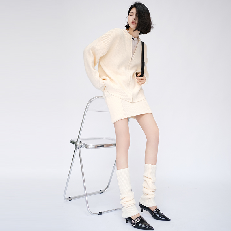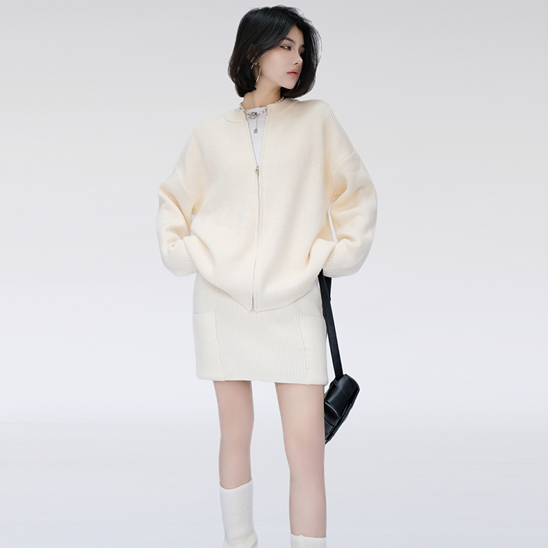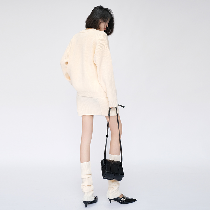 OF U休闲慵懒宽松针织开衫两件套女早春松弛感软糯毛衣半身裙套装