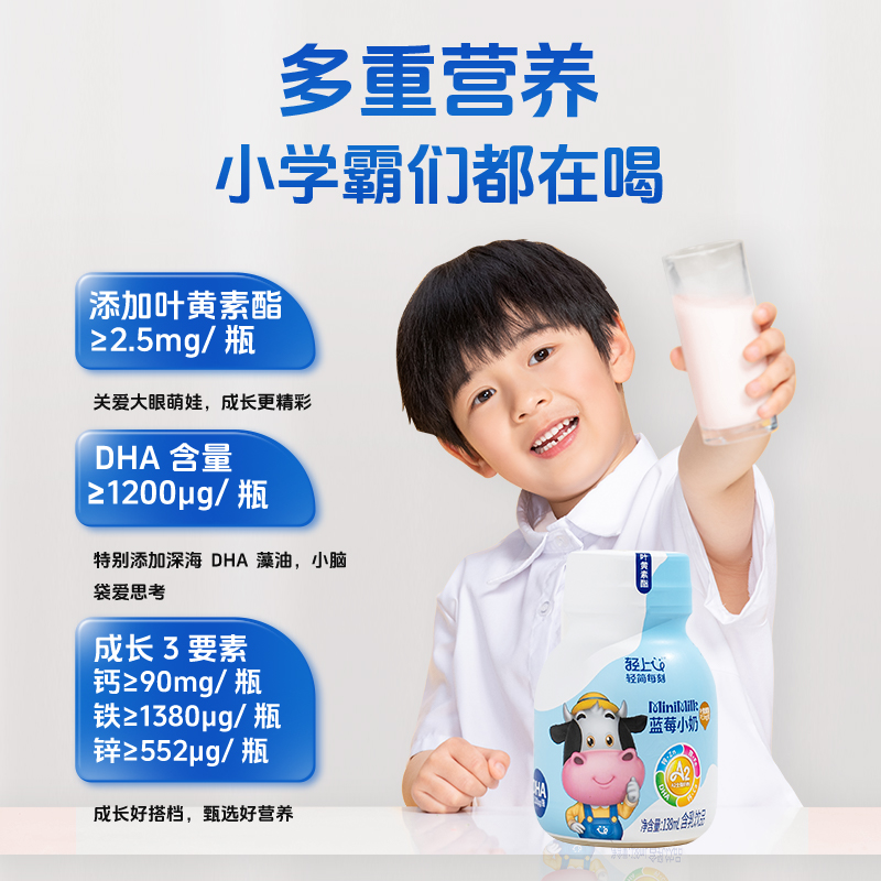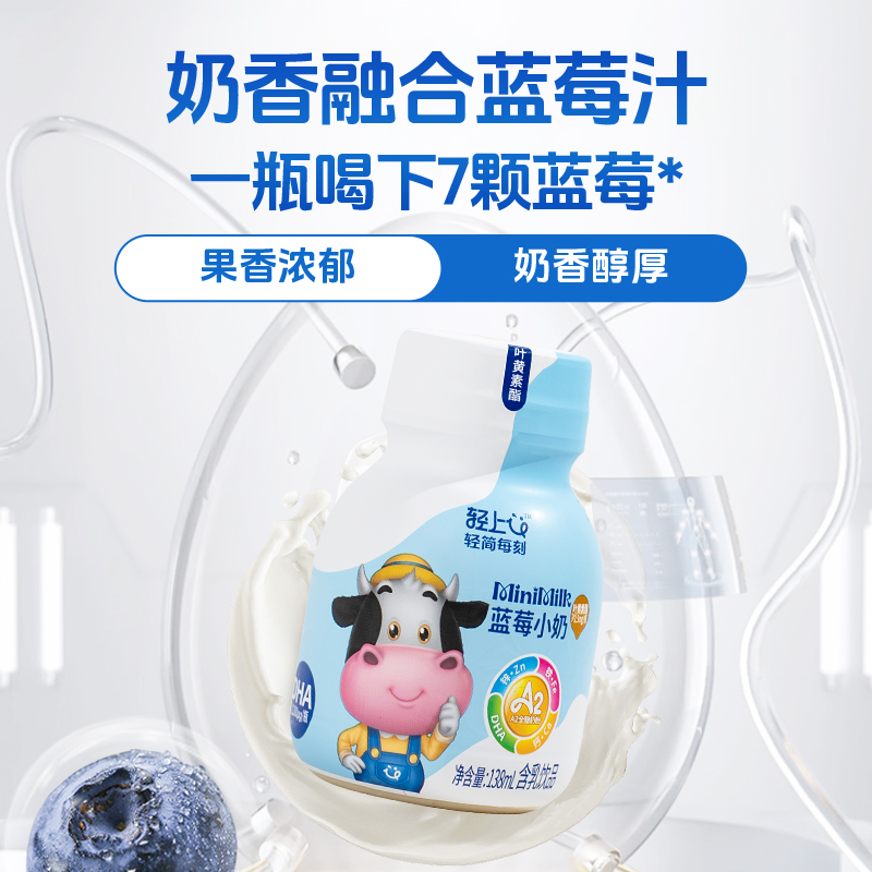 轻上蓝莓小奶儿童牛奶饮品成长钙铁锌DHA叶黄素含A2奶粉儿童饮料