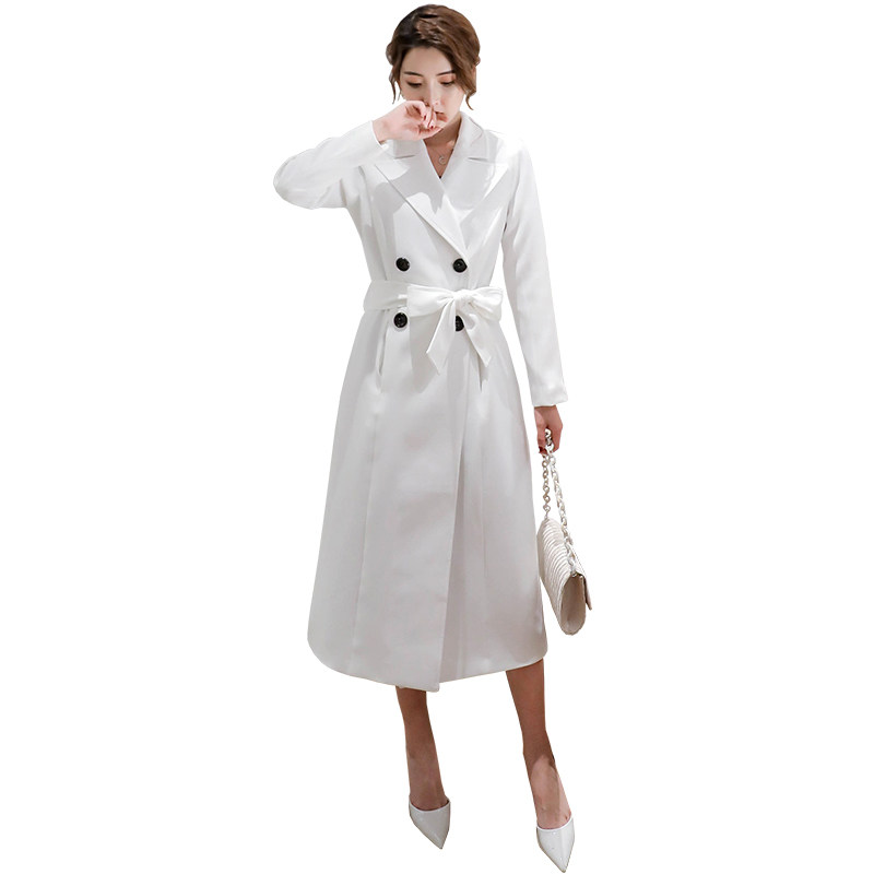 白色风衣中长款外套2025新款春秋女士气质时尚修身双排扣西装大衣