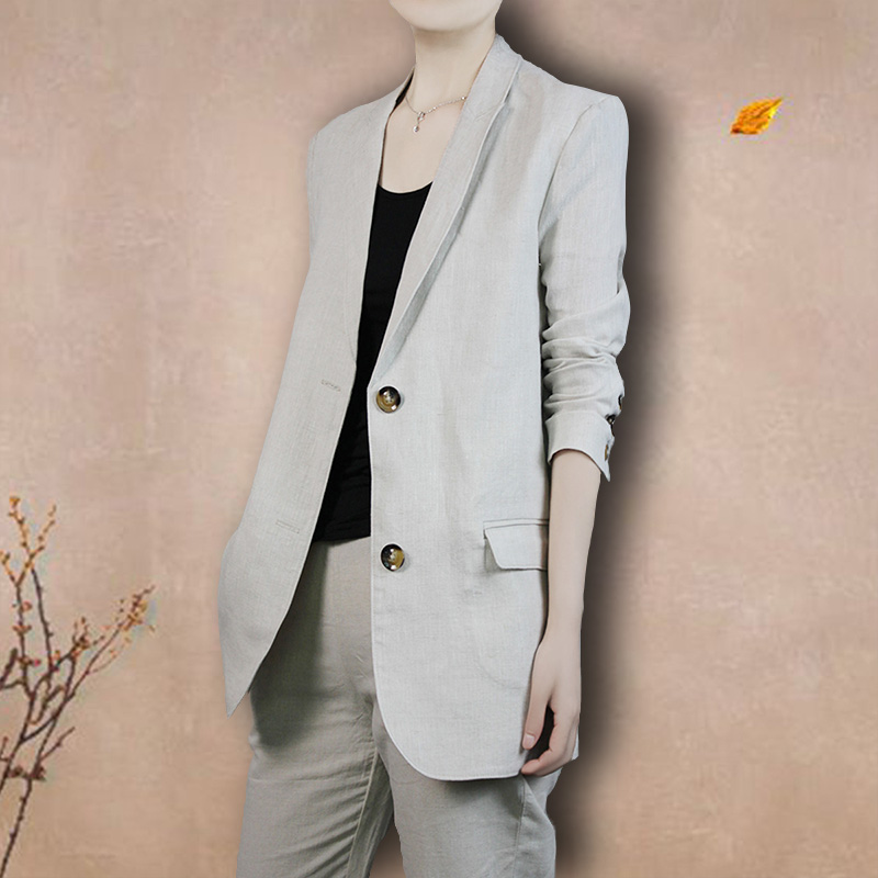 亚麻小西装外套女2025春夏季新款中长款chic休闲薄款西服女上衣