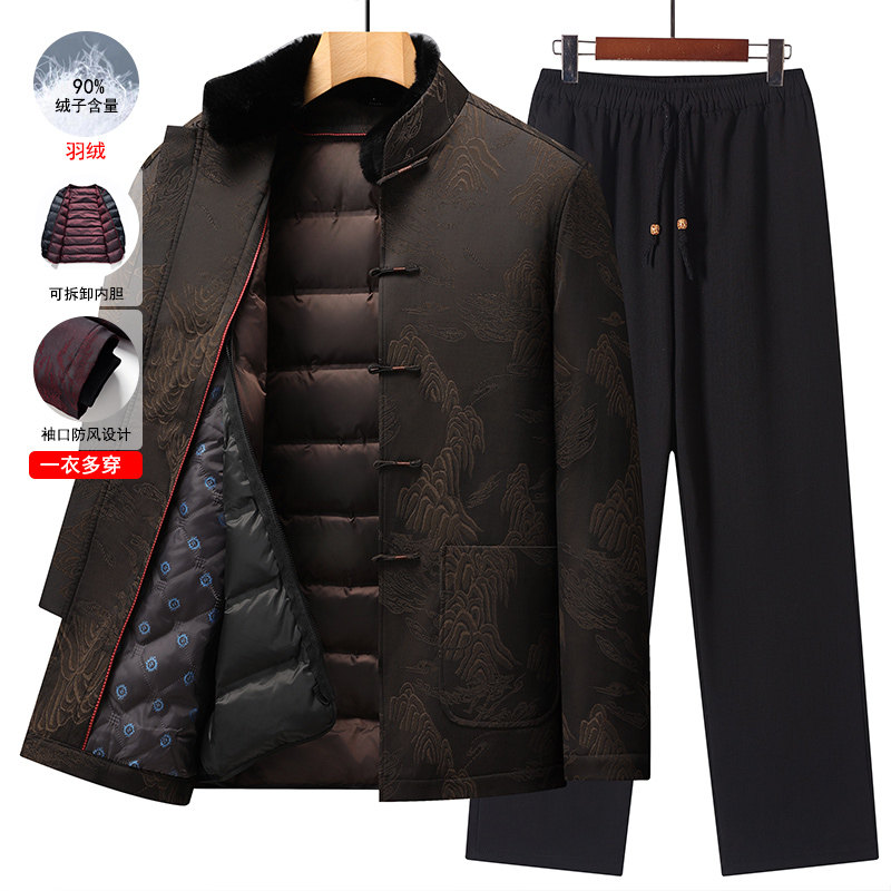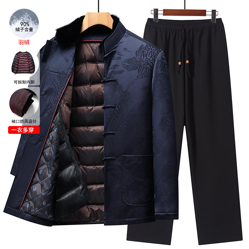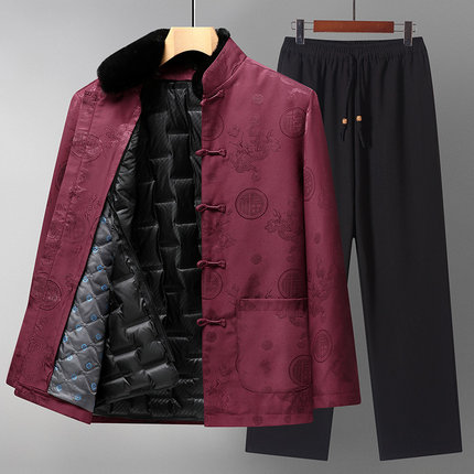 唐装男中老年冬季爸爸装活里活面老人生日过寿喜庆爷爷可拆卸羽绒