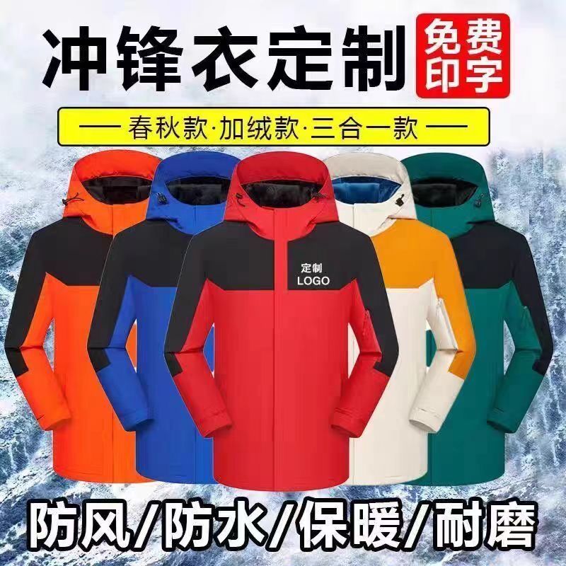 冲锋衣工作服定制印字logo防水三合一两件套加绒加厚户外工装外套
