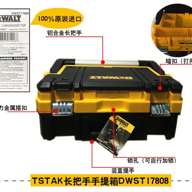 正品得伟DEWALT长把手双层多功能收纳盒手提塑料工具箱DWST17808
