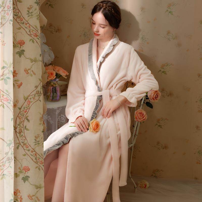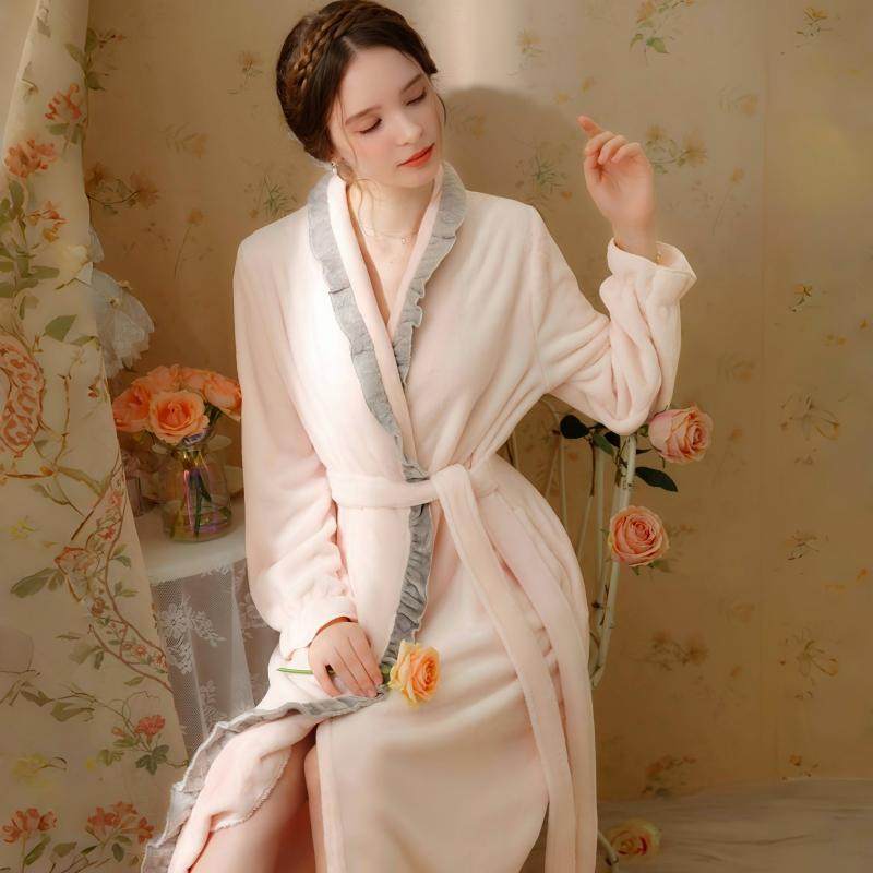 珊瑚绒睡袍女冬天加绒加厚长款保暖浴衣秋冬季法兰绒性感浴袍睡衣