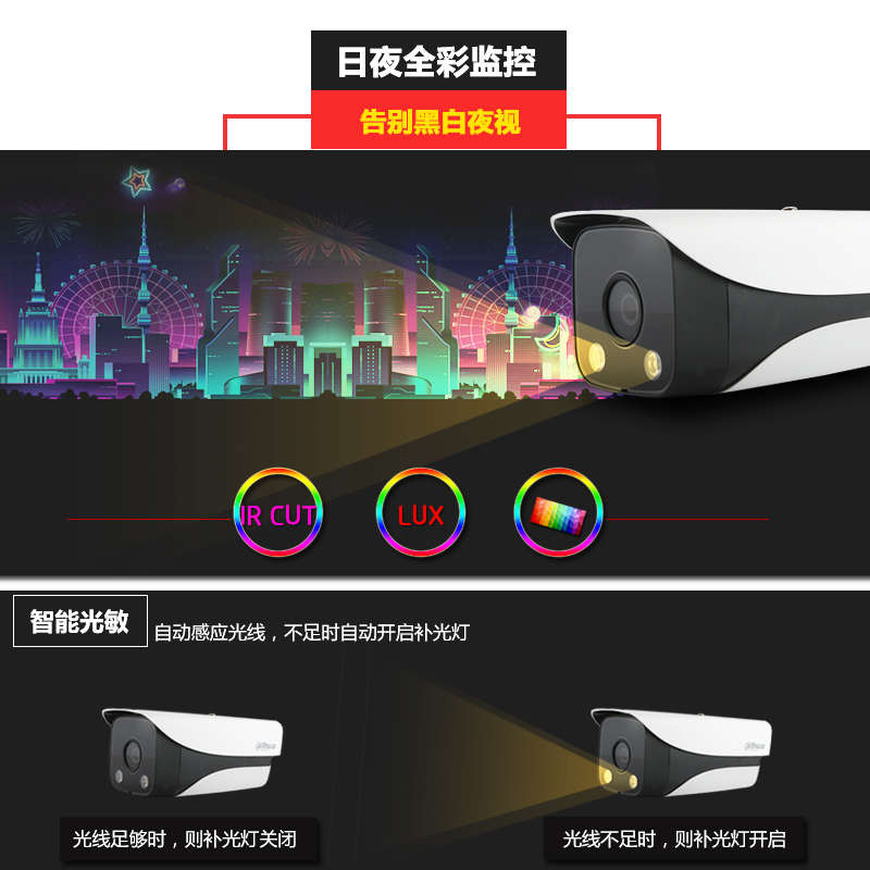 大华同轴200万日夜全彩高清监控摄像头1080P夜视有线室外闭路模拟