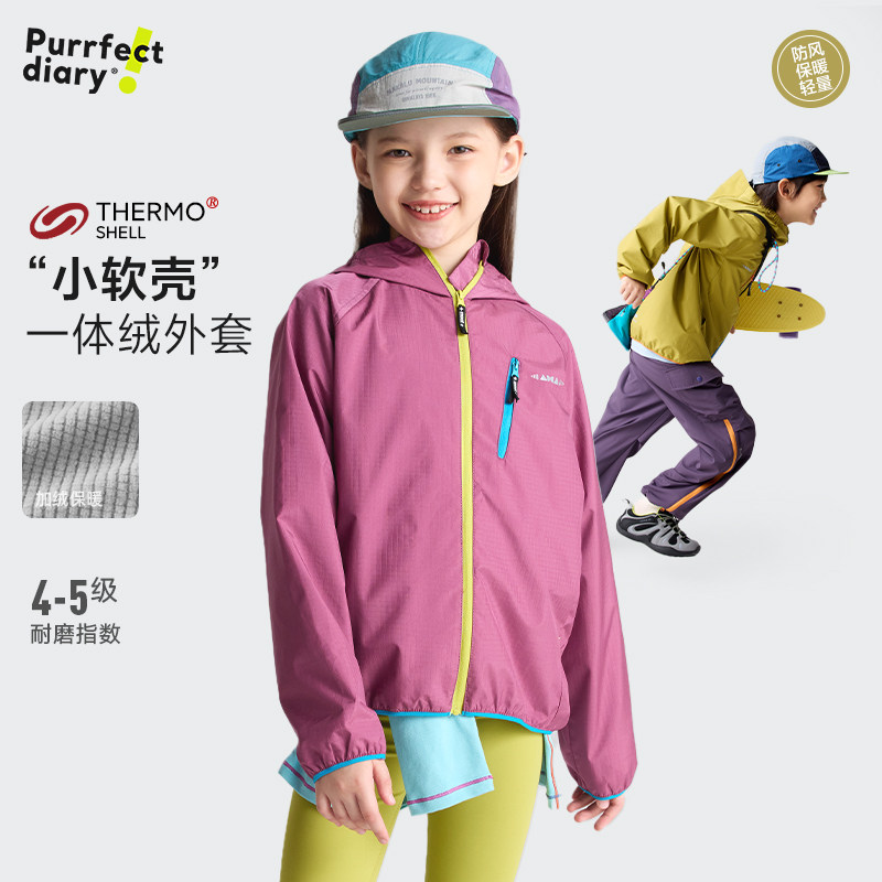 咕噜日记童装儿童外套春秋款男童户外服加绒上衣新款女童冲锋衣
