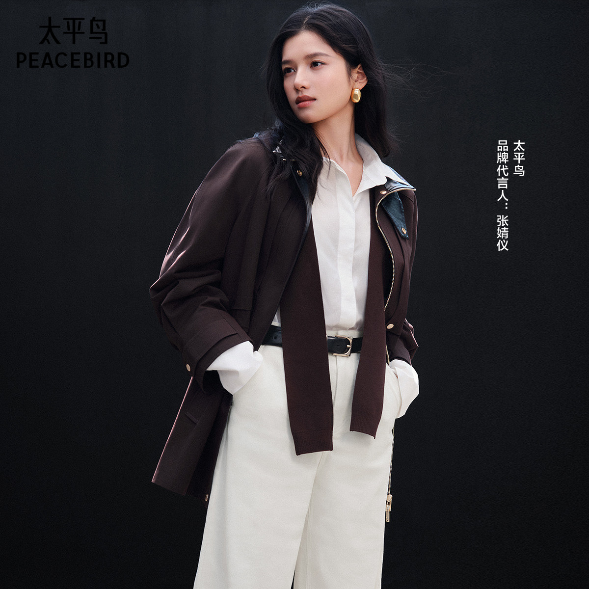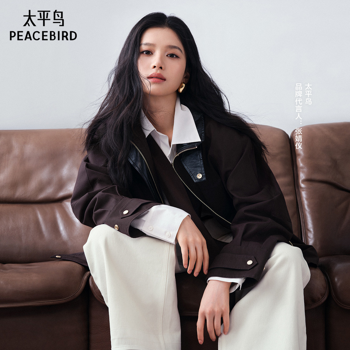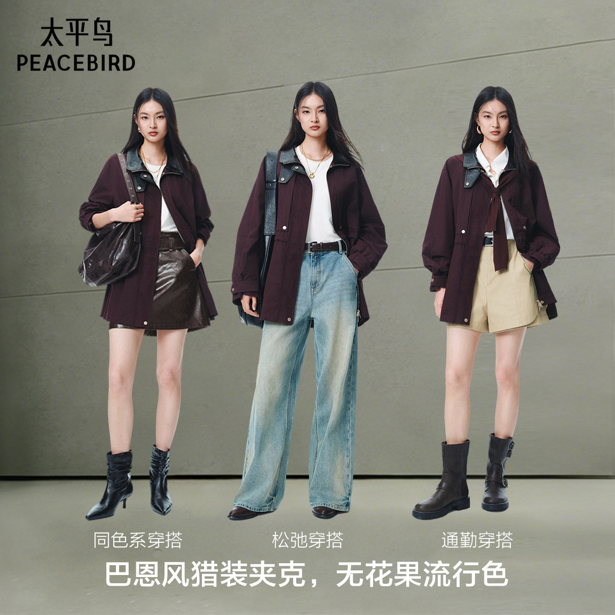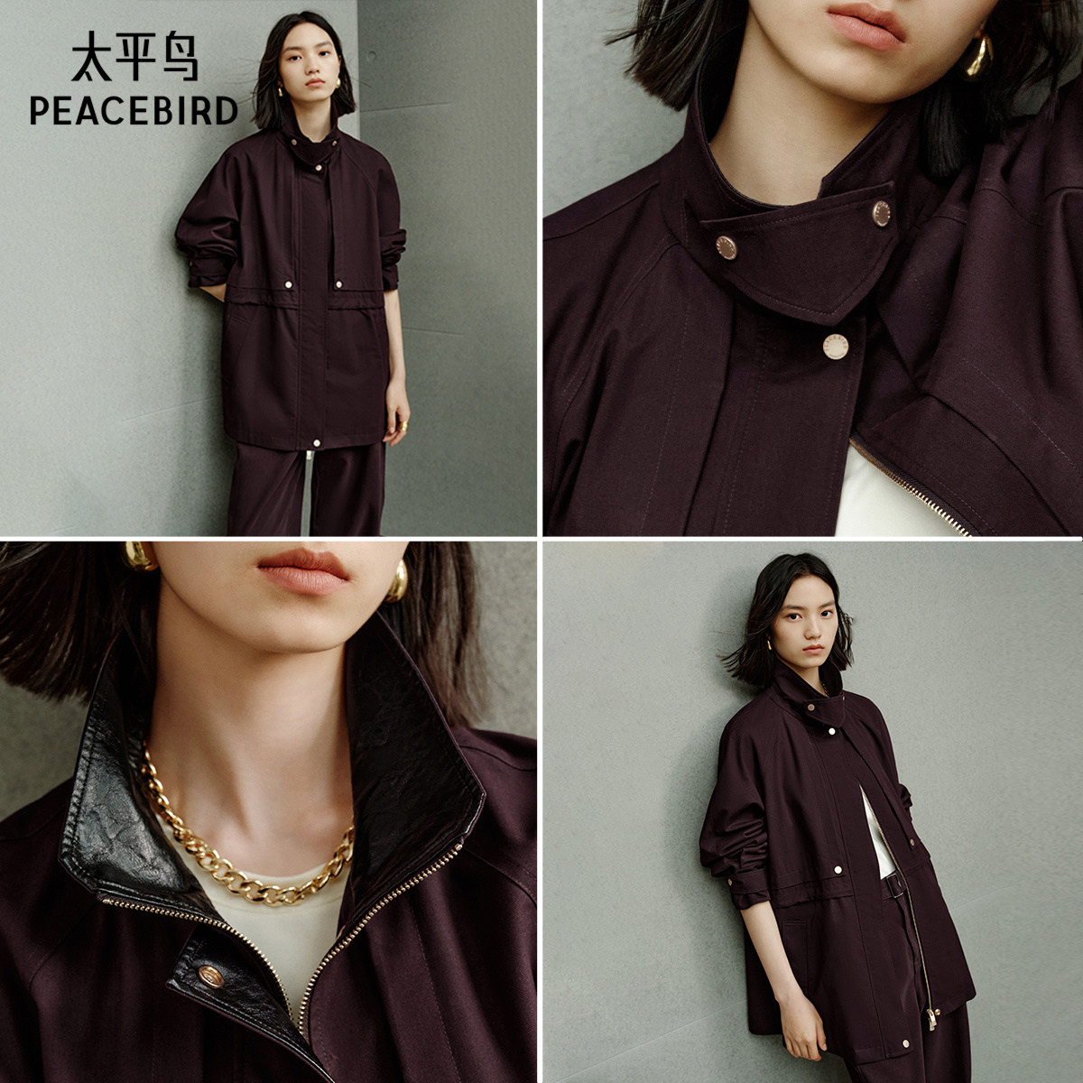 张婧仪同款 太平鸟质感黑莓巴恩风猎装夹克25风衣外套A1BBF3524