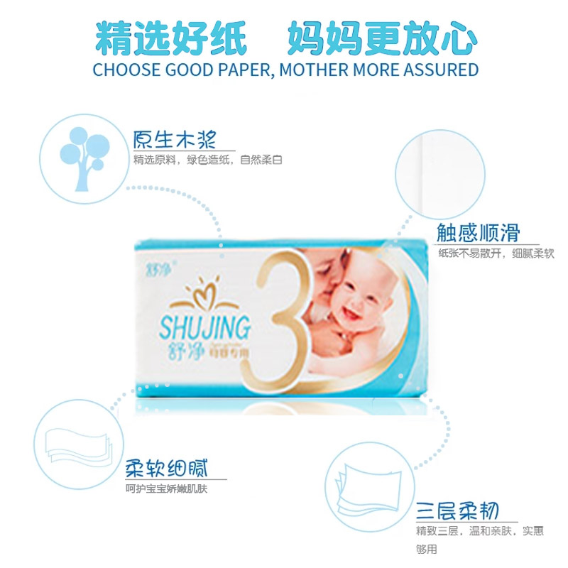 舒净38包432张母婴专用抽纸加长加厚克湿水喷浆抽纸宝宝纸巾