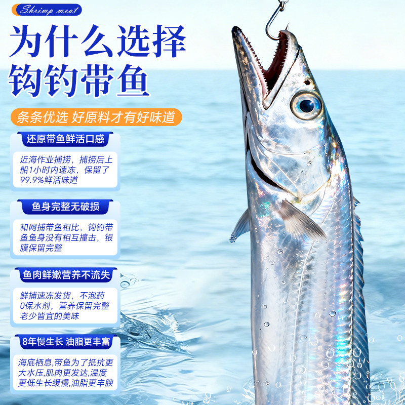 海仙部落带鱼新鲜冷冻特级大深海钓带刀鱼东海整条小眼带鱼整箱