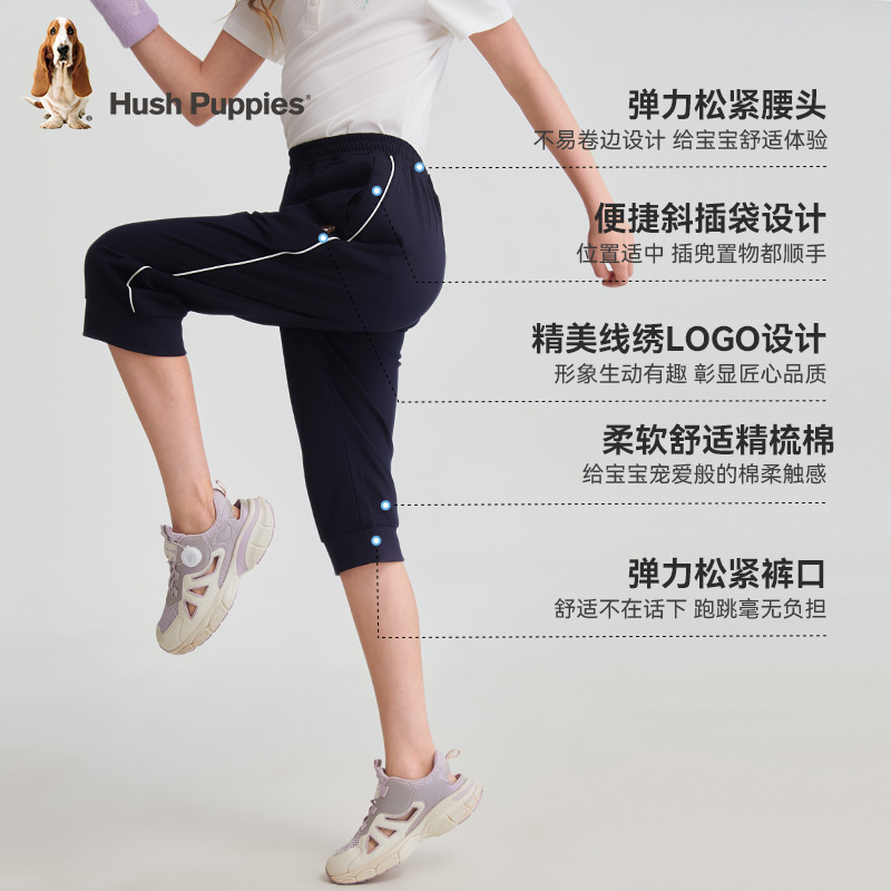 暇步士童装女童短裤2025夏装新款大童宽松运动裤儿童针织七分裤子
