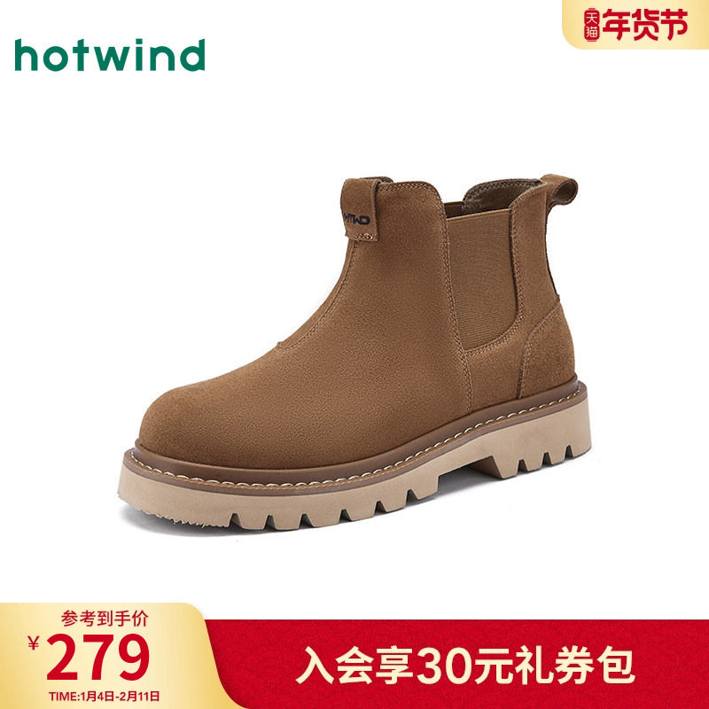 热风2025年冬季新款男士马丁靴时尚休闲切尔西复古工装鞋