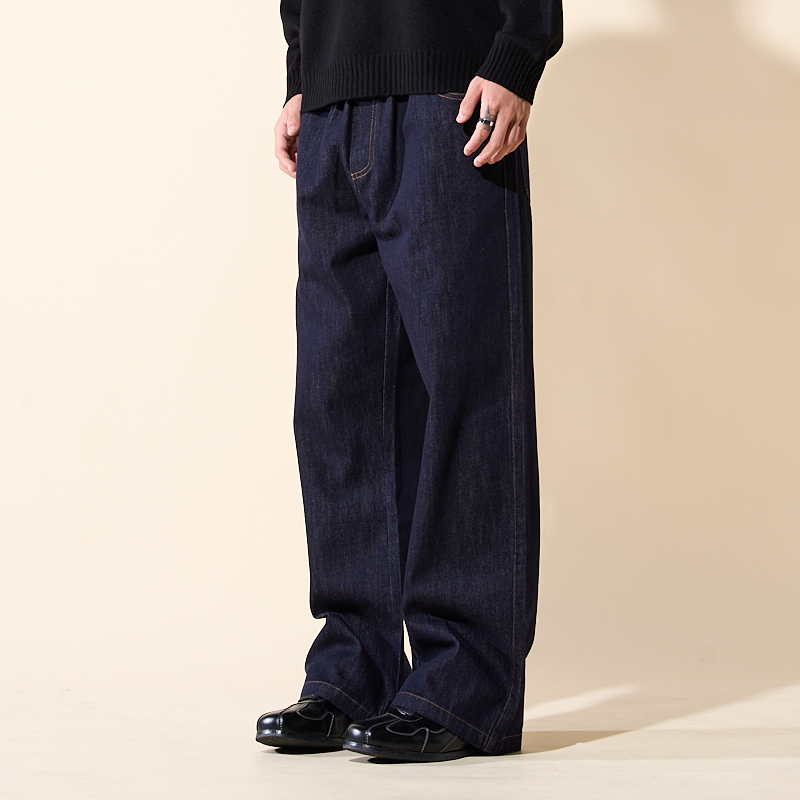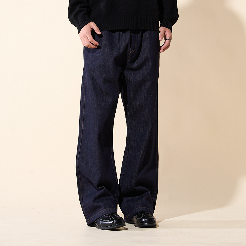 LOADMIND美式复古高个子加长牛仔裤子男微喇宽松原色阔腿大码藏青