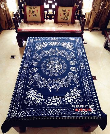 正宗手工土布印染富贵花蓝印花布桌布蜡染面料农家乐茶馆餐桌布料