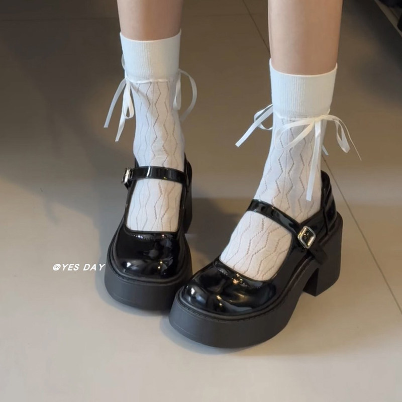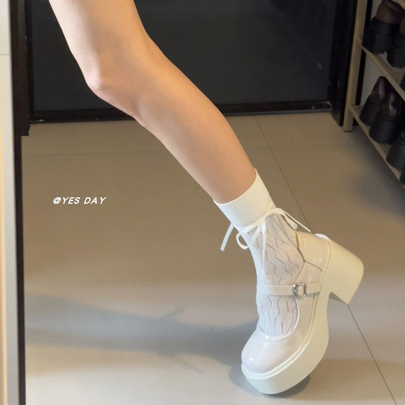 YesDay白色日系jk配裙子粗高跟玛丽珍鞋2025秋季新款复古小皮鞋女
