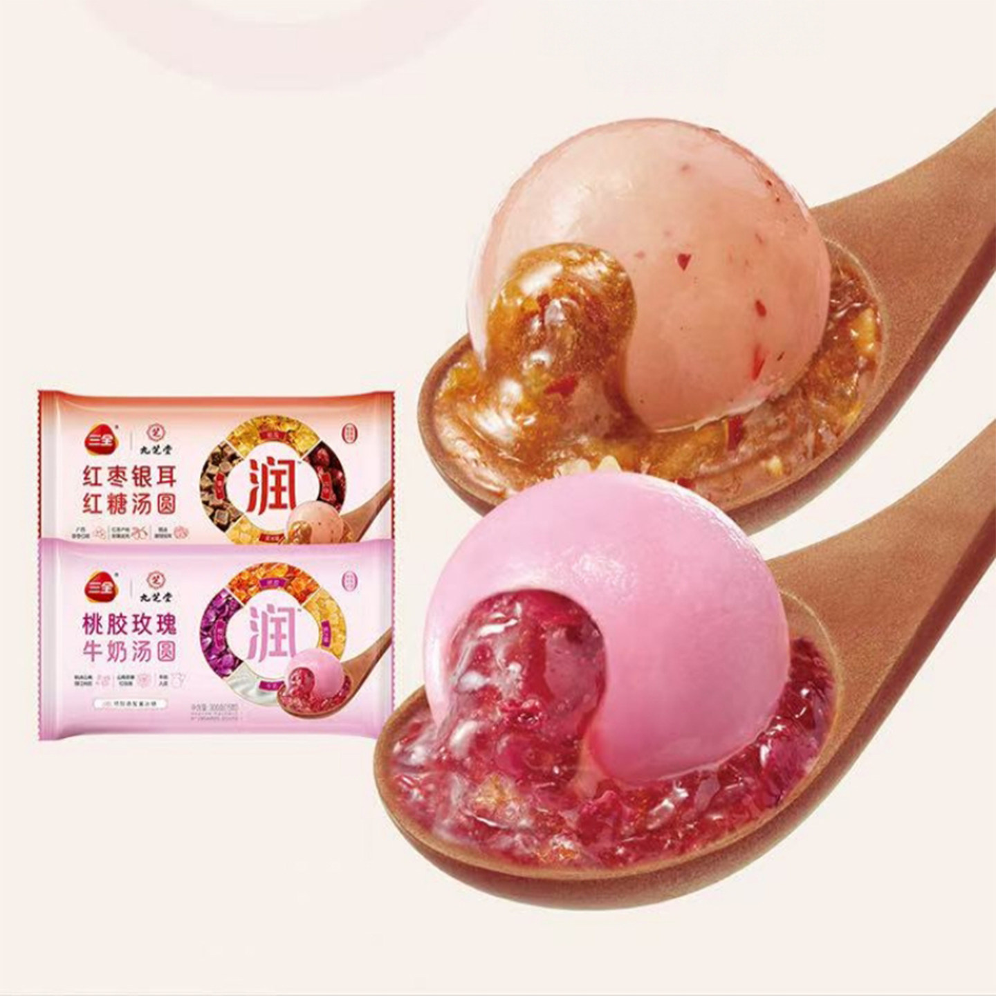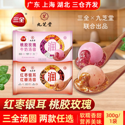 三全九芝堂桃胶玫瑰汤圆红枣银耳汤圆300g冷冻速食品营养美味易做
