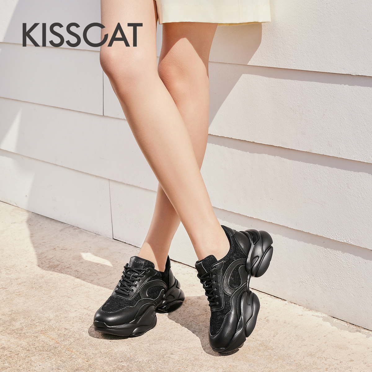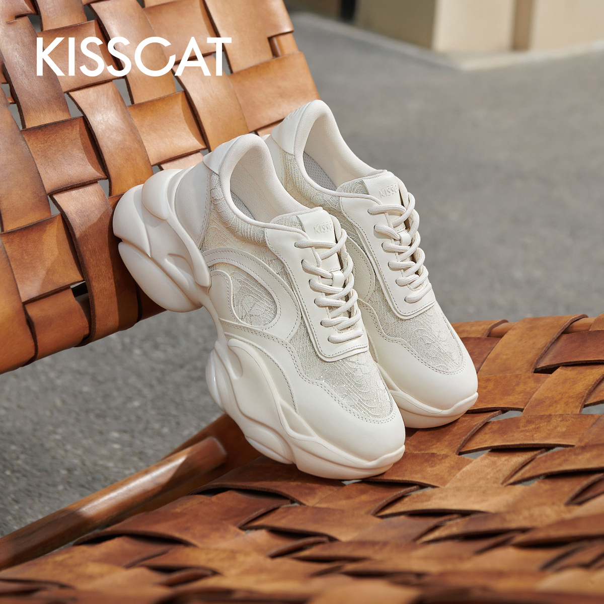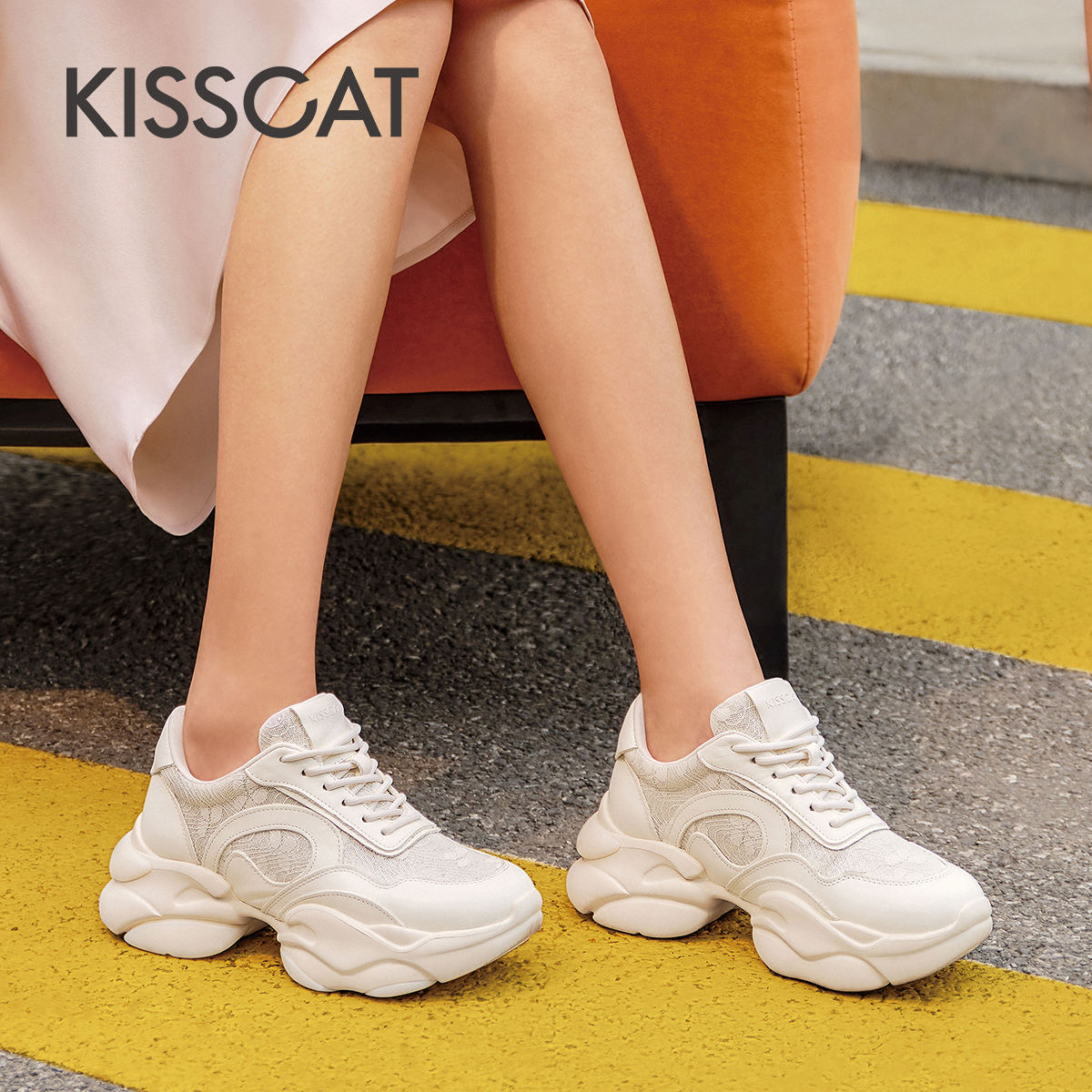 [孙茜同款]KISSCAT接吻猫秋季蕾丝刺绣老爹鞋女厚底运动休闲鞋