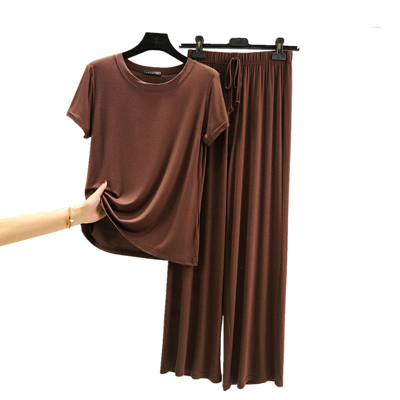 莫代尔短袖T恤女夏季薄款上衣休闲裤套装外穿大码宽松睡衣两件套