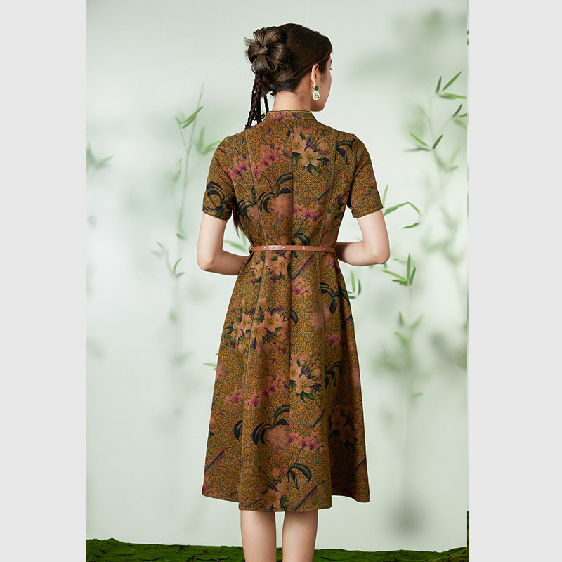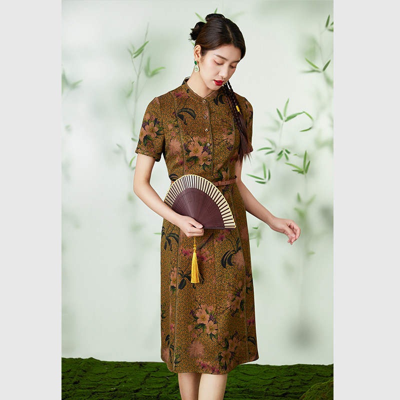 乔万尼国风旗袍裙香云纱连衣裙