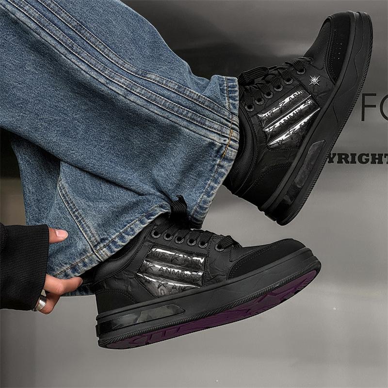 明星同款黑色国潮厚底星星板鞋百搭增高男鞋情侣款春季痞帅小黑鞋