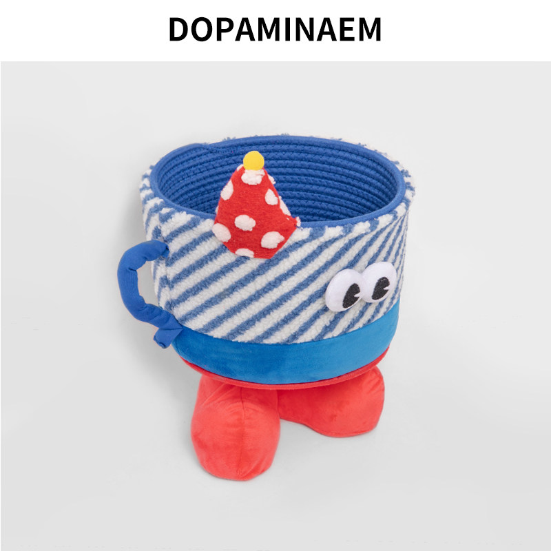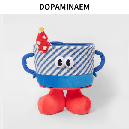 蓝白条纹小怪兽收纳筐羊羔绒杂物置物篮零食玩具整理箱儿童伴手礼