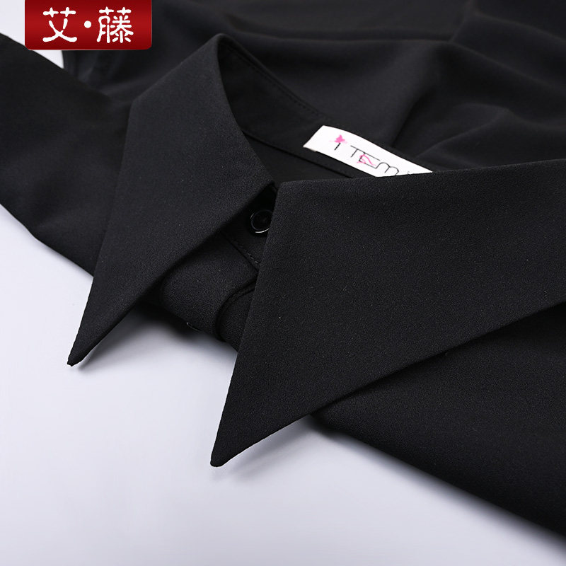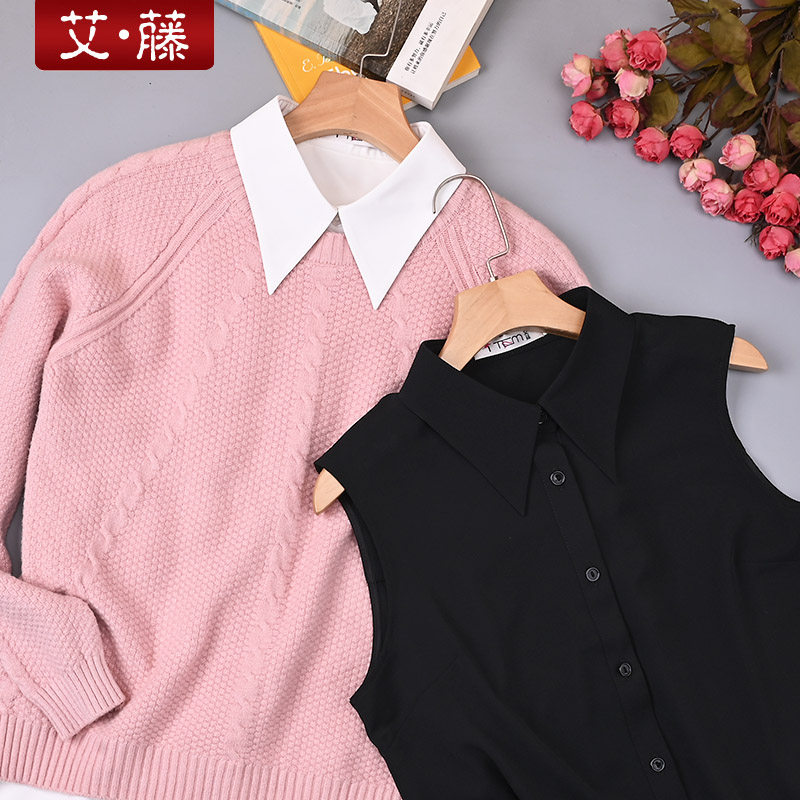 艾藤百搭遮屁屁中长衬衣打底雪纺无袖衬衫黑白色尖领内搭配卫衣女
