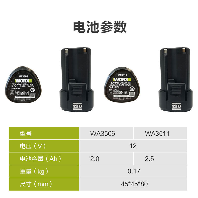 威克士12V锂电池充电器通用WU130X/131X/132X电池WA3506配件3713