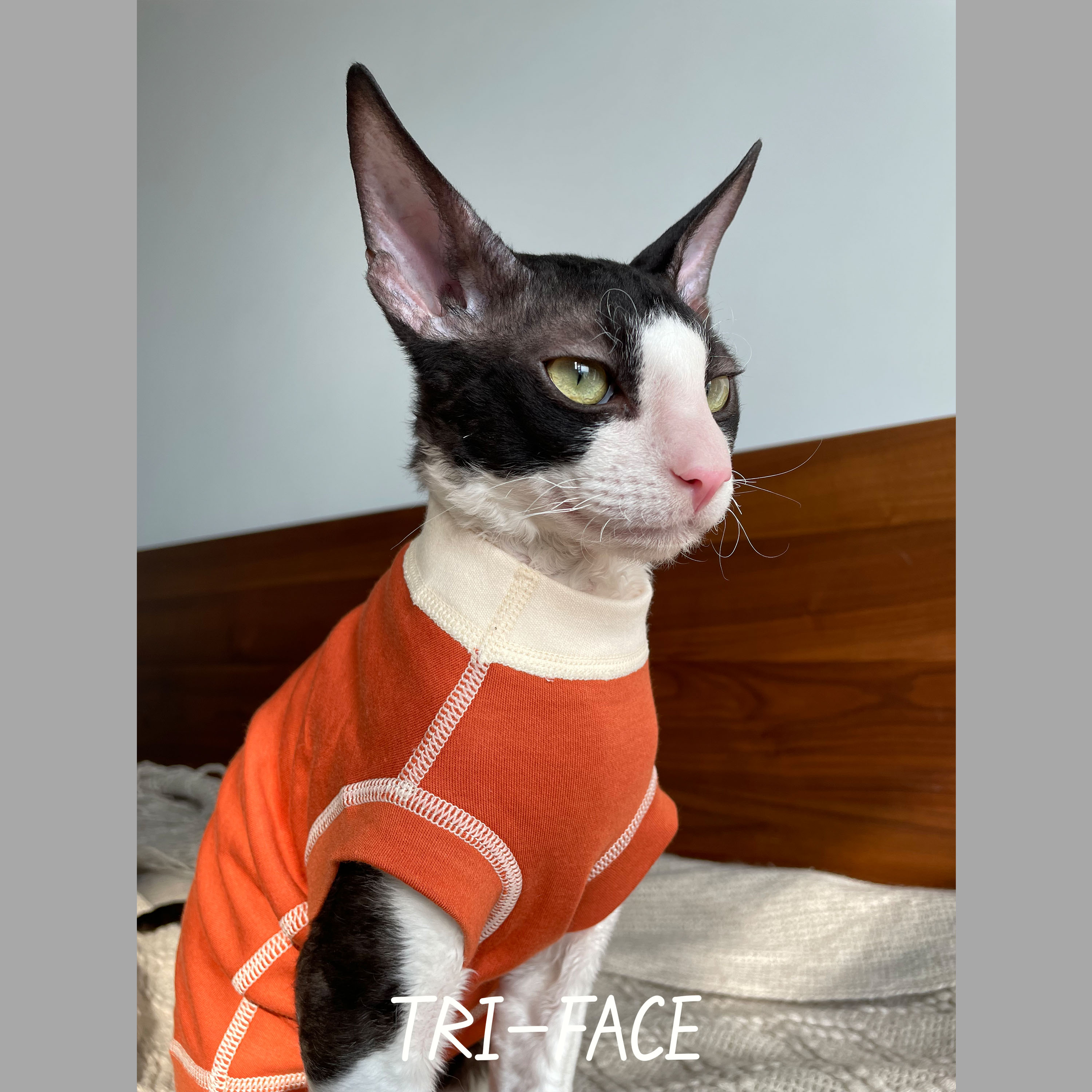 三角脸无毛德文阿比暹罗豹猫衣服宠物服装拼接撞色防掉亲肤春秋