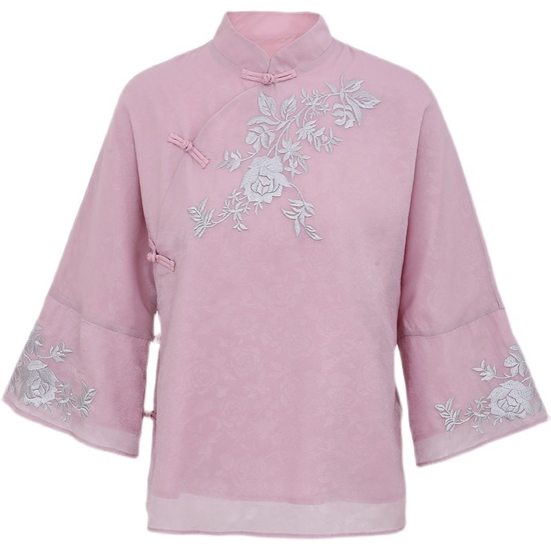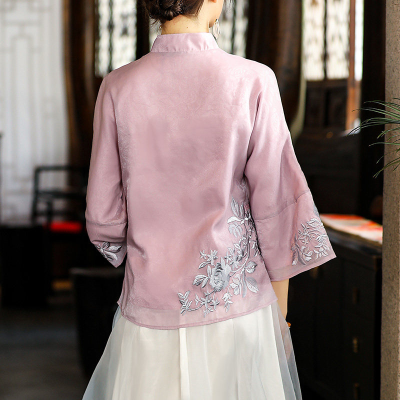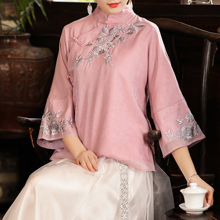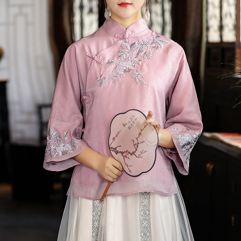 文艺民族风改良旗袍提花刺绣上衣2026春季女装中式复古盘扣唐装