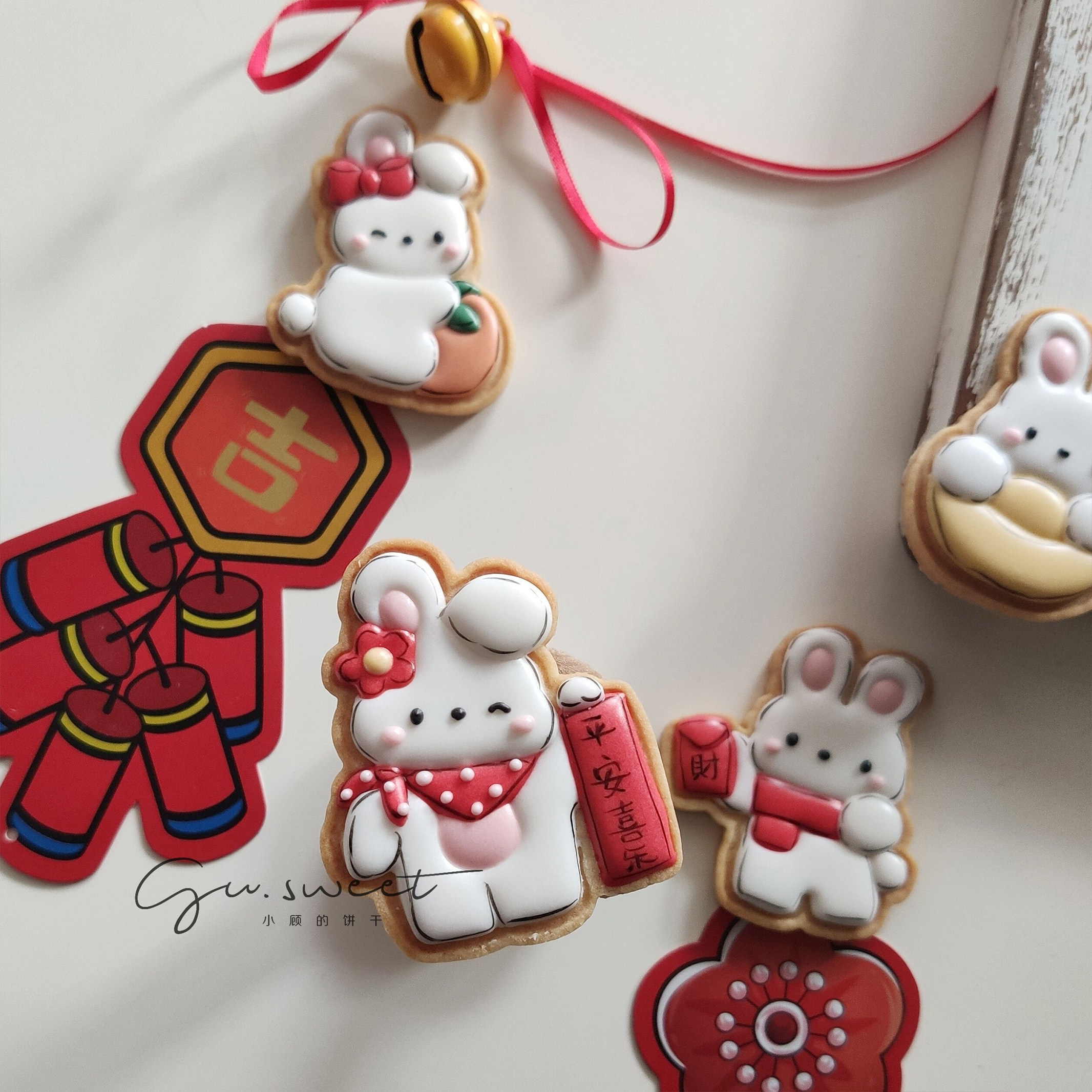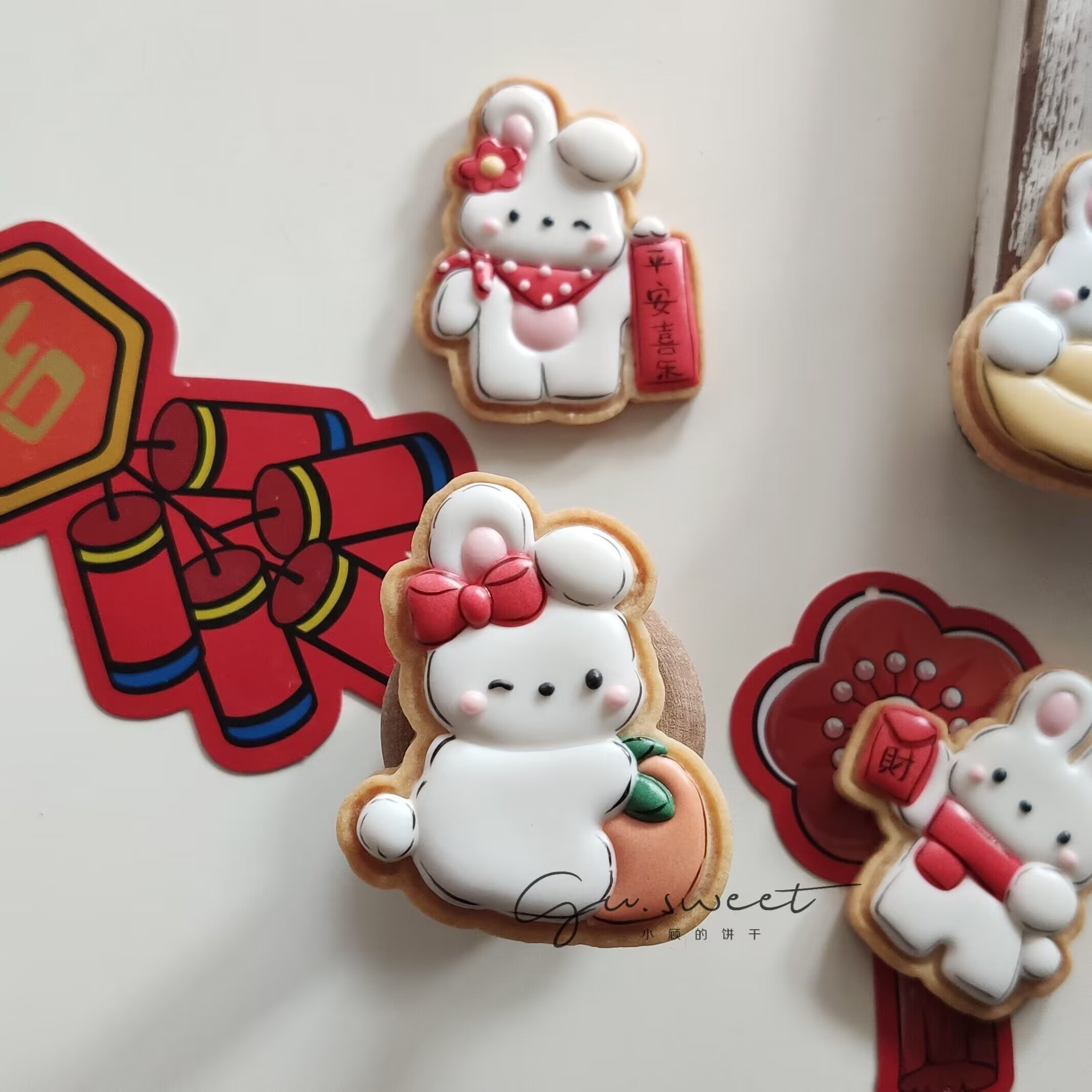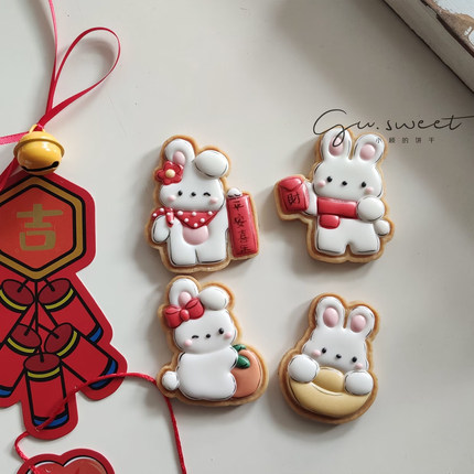 橡树果子兔年卡通糖霜饼干模中式小兔子春联元宝橘子红包饼皮工具