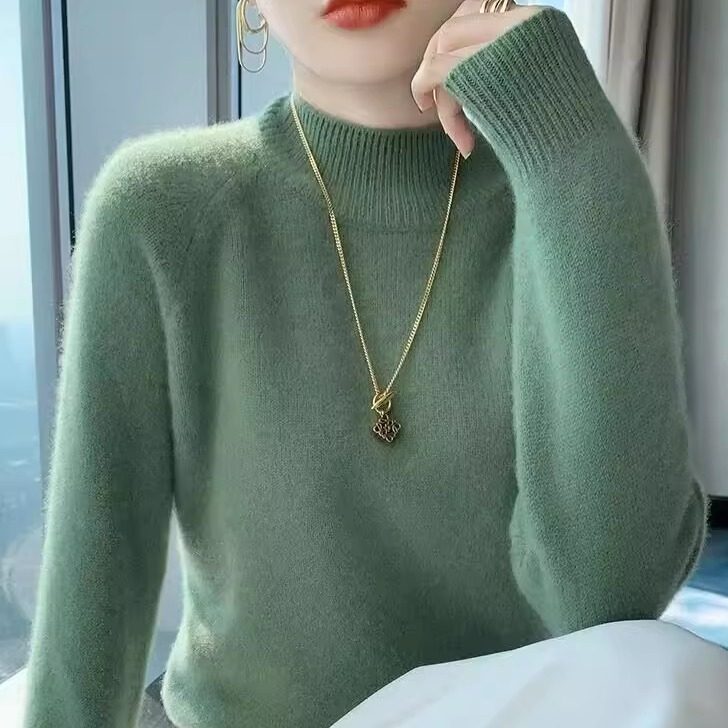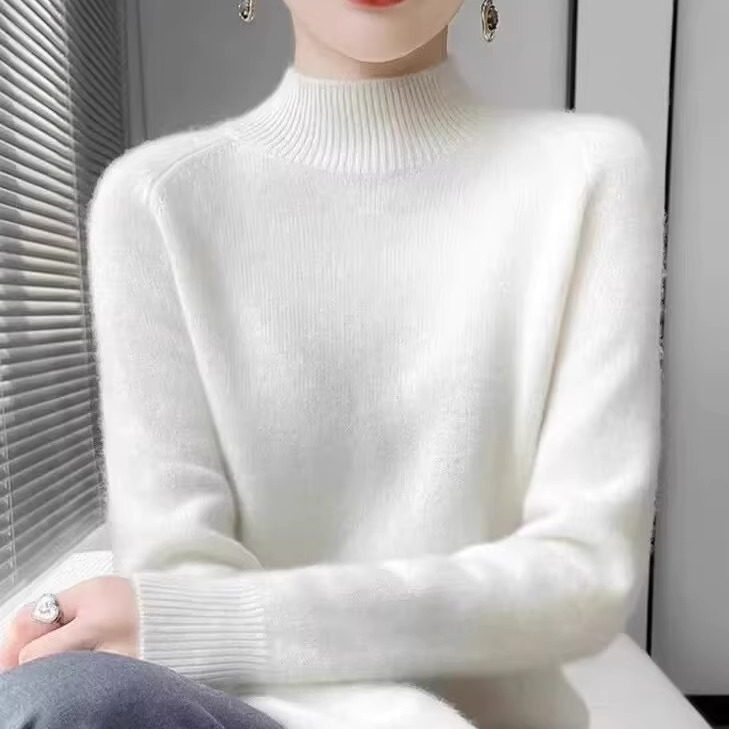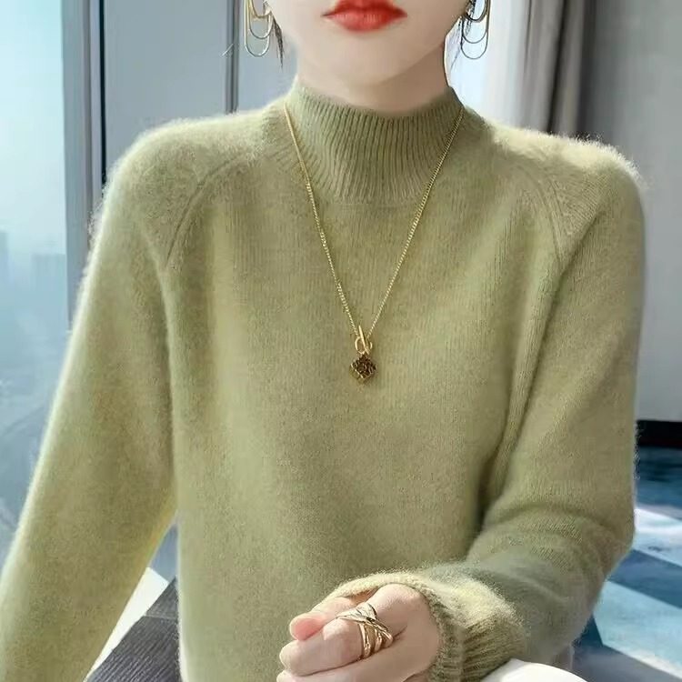高级感半高领纯羊毛衫女士新款纯色宽松内搭保暖毛衣针织打底衫