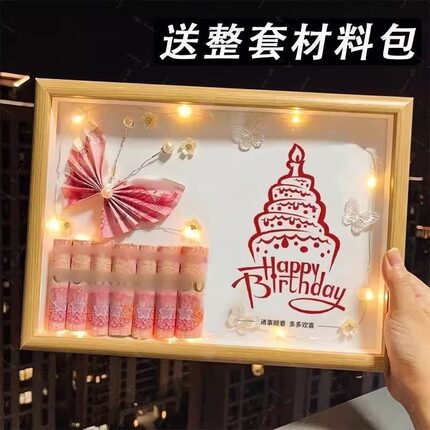 生日快乐蛋糕图案有钱花diy材料包相框创意生日礼品送女友送闺蜜