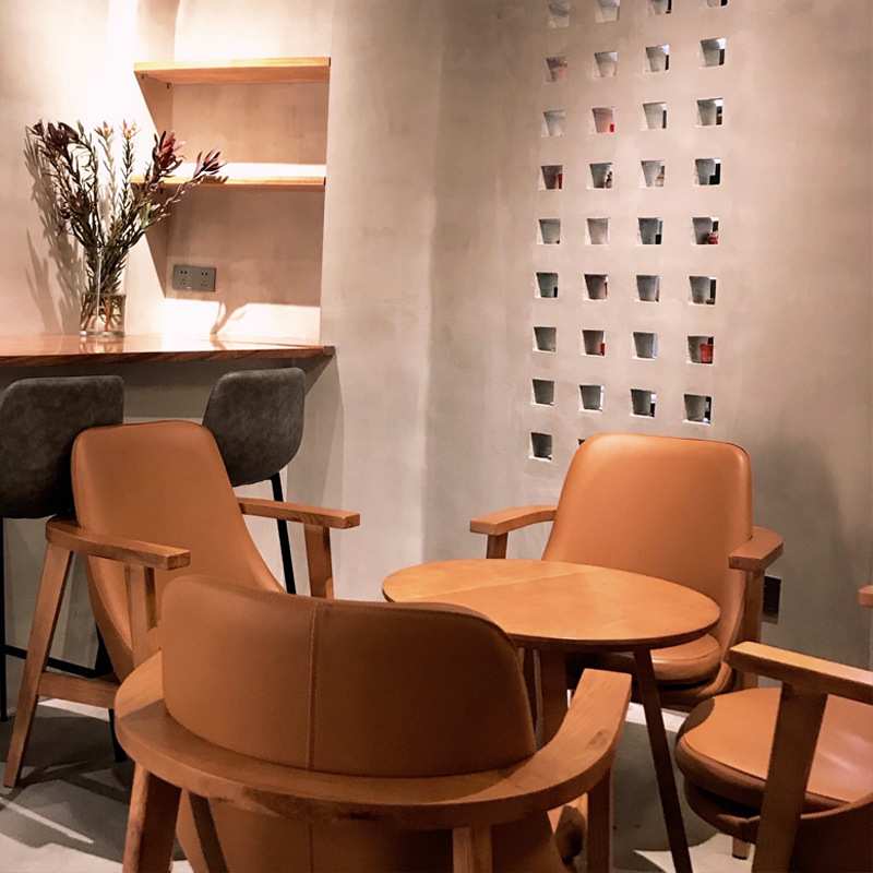 咖啡厅实木休闲沙发椅子奶茶甜品店桌椅组合网红工业风一桌二椅