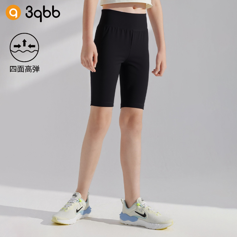 女童速干裤鲨鱼裤五分裤中裤高弹户外运动夏季薄款儿童白色打底裤