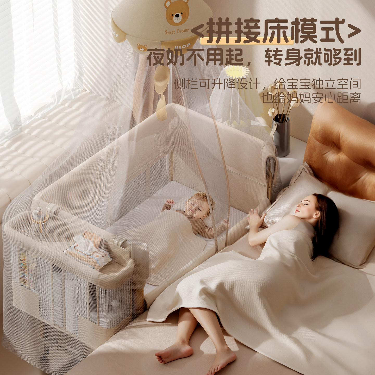 ULOP优乐博婴儿床可移动拼接大床一键折叠宝宝床带床垫新生儿礼物