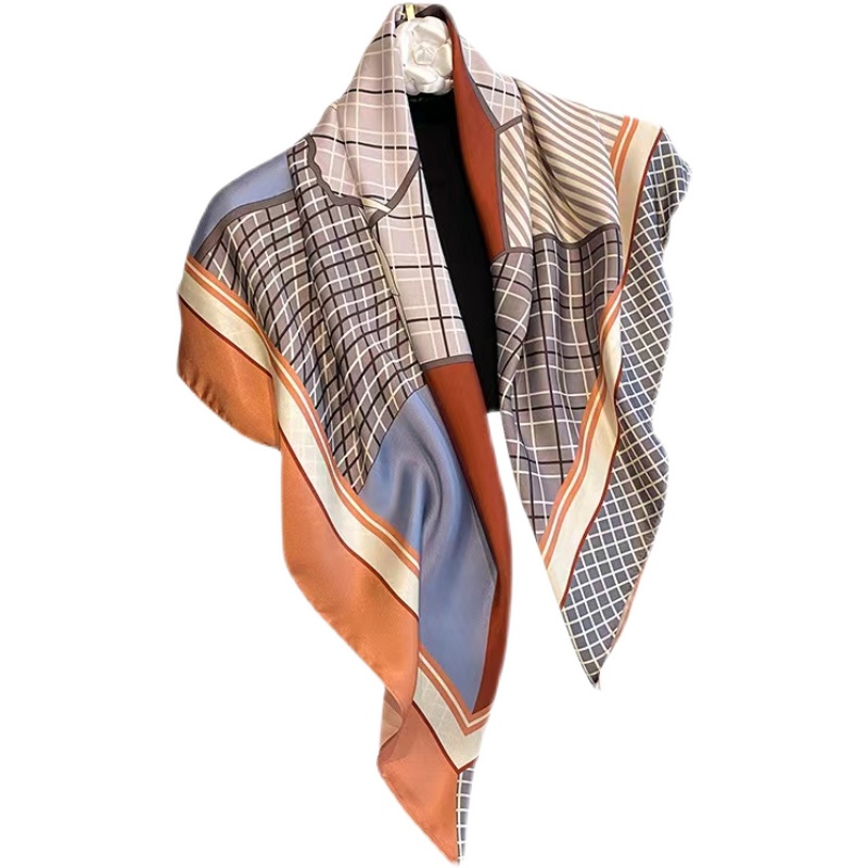 2022春秋新款复古大方巾女时尚印花正方形挡风护颈围巾丝巾女领巾