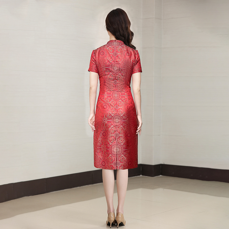 宋锦喜婆婆婚宴装红色连衣裙