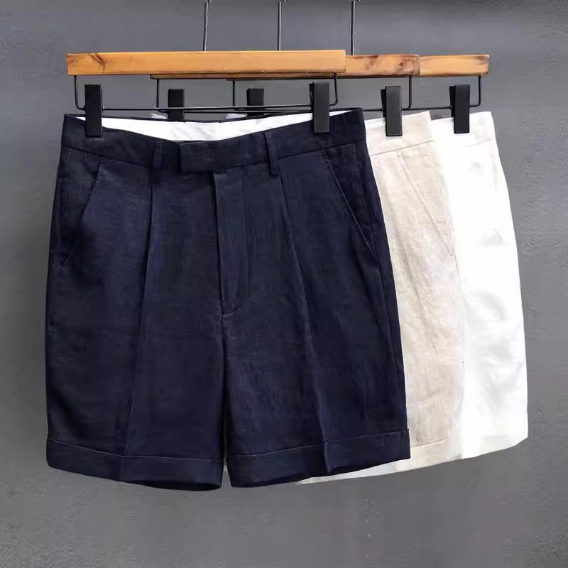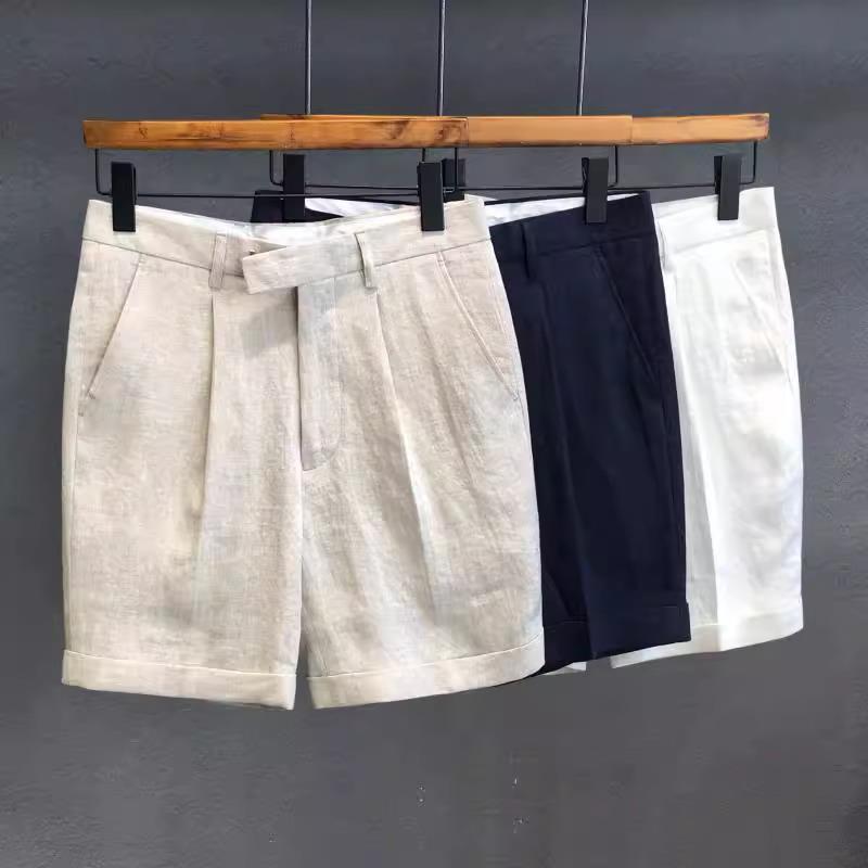 轻奢男士薄款休闲亚麻五分裤2025夏季潮流透气五分裤子白色小西裤